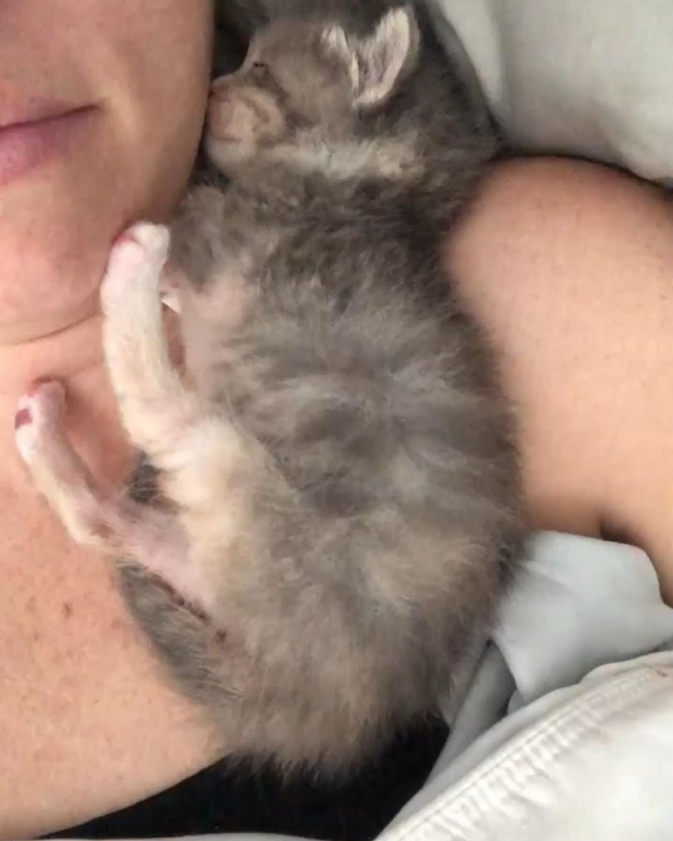 After every feeding, she curled up in the crook of her foster mom's neck for some extra TLC.