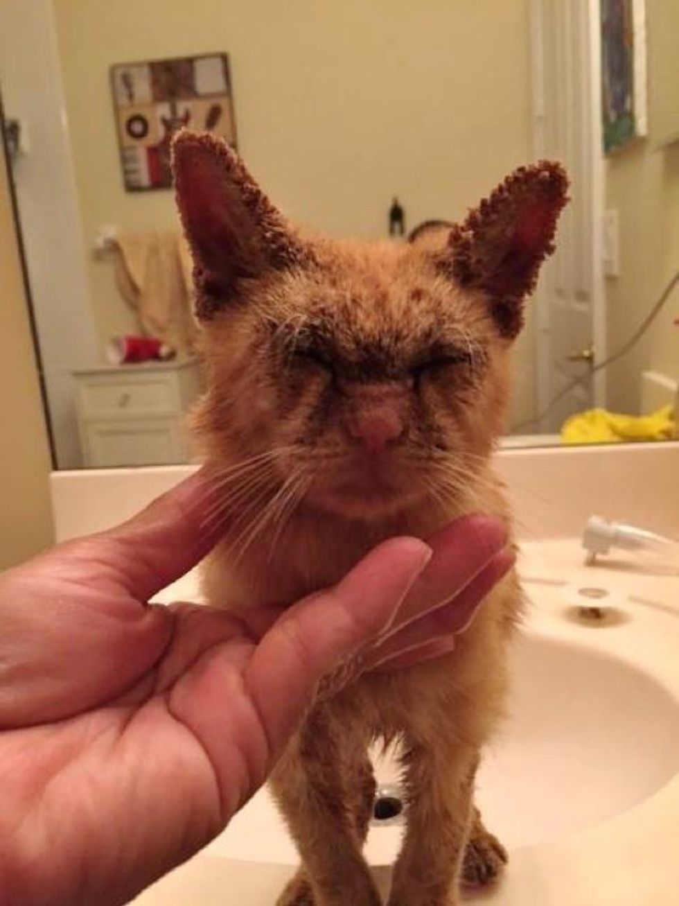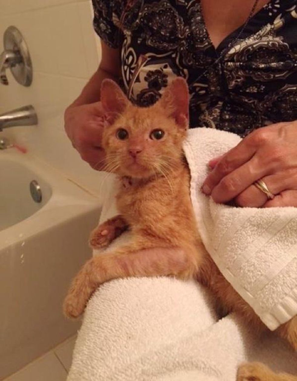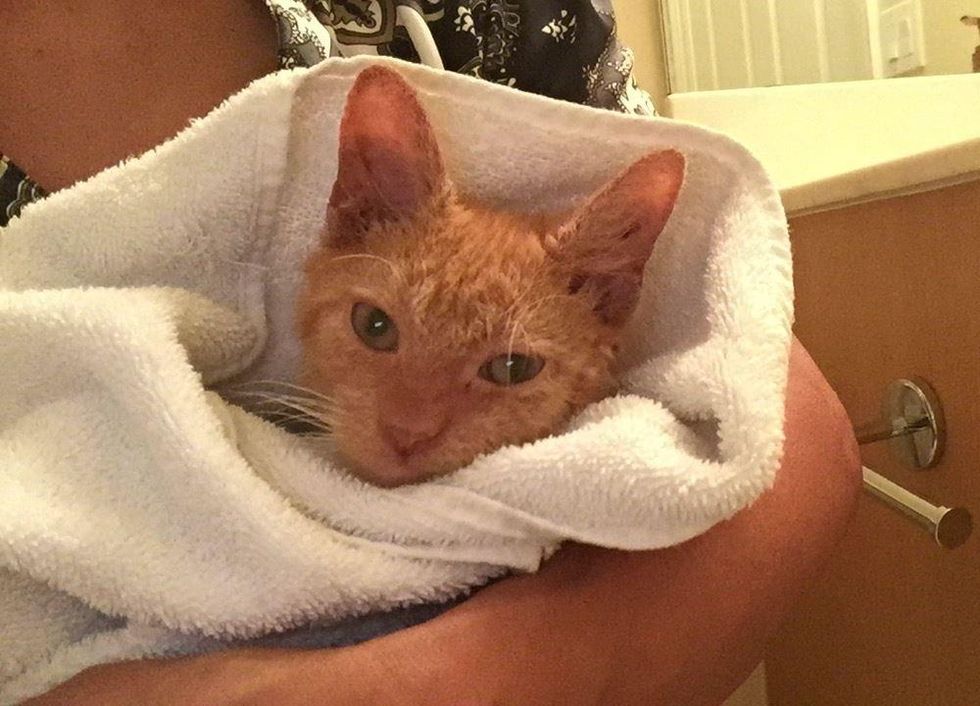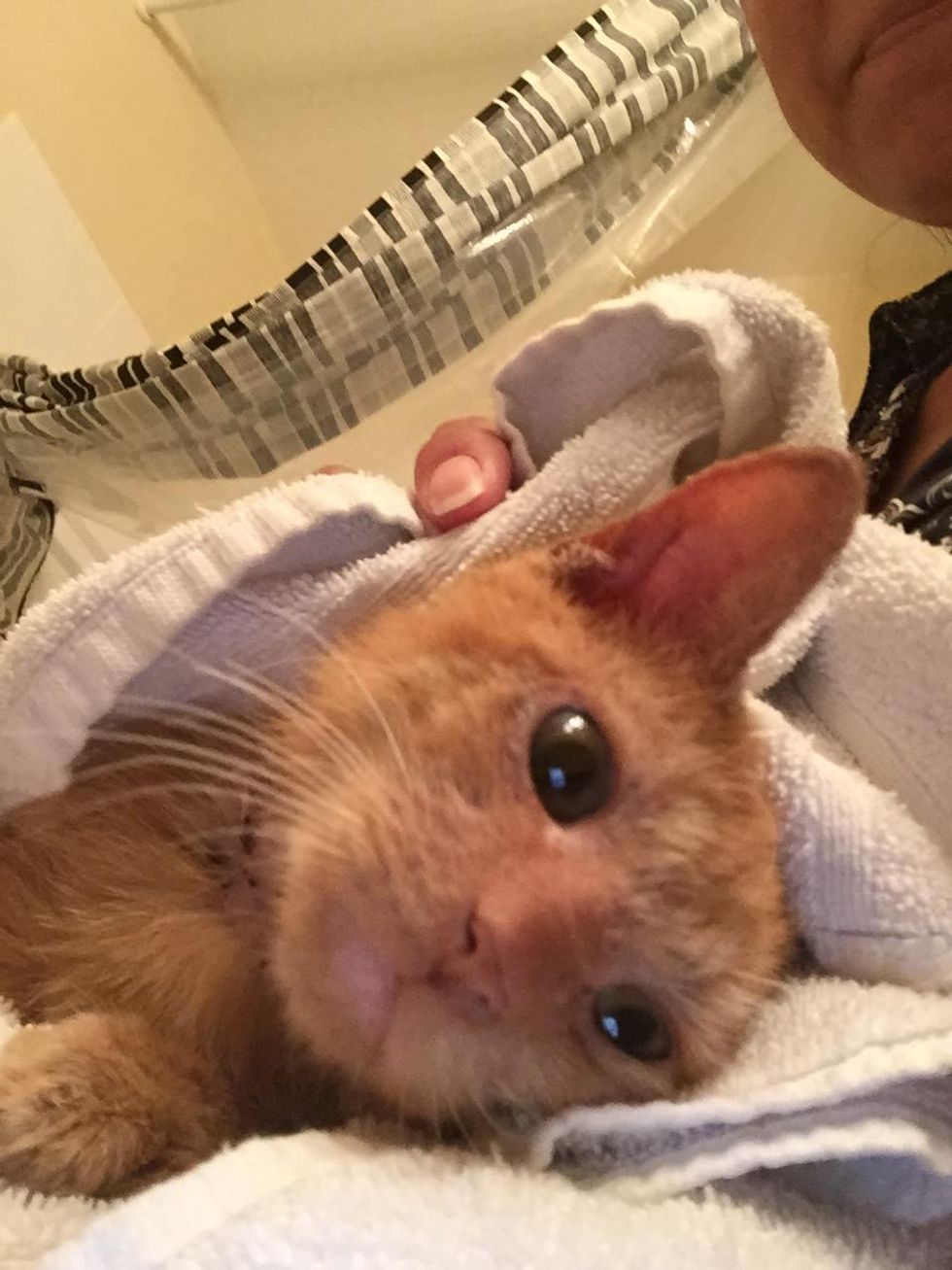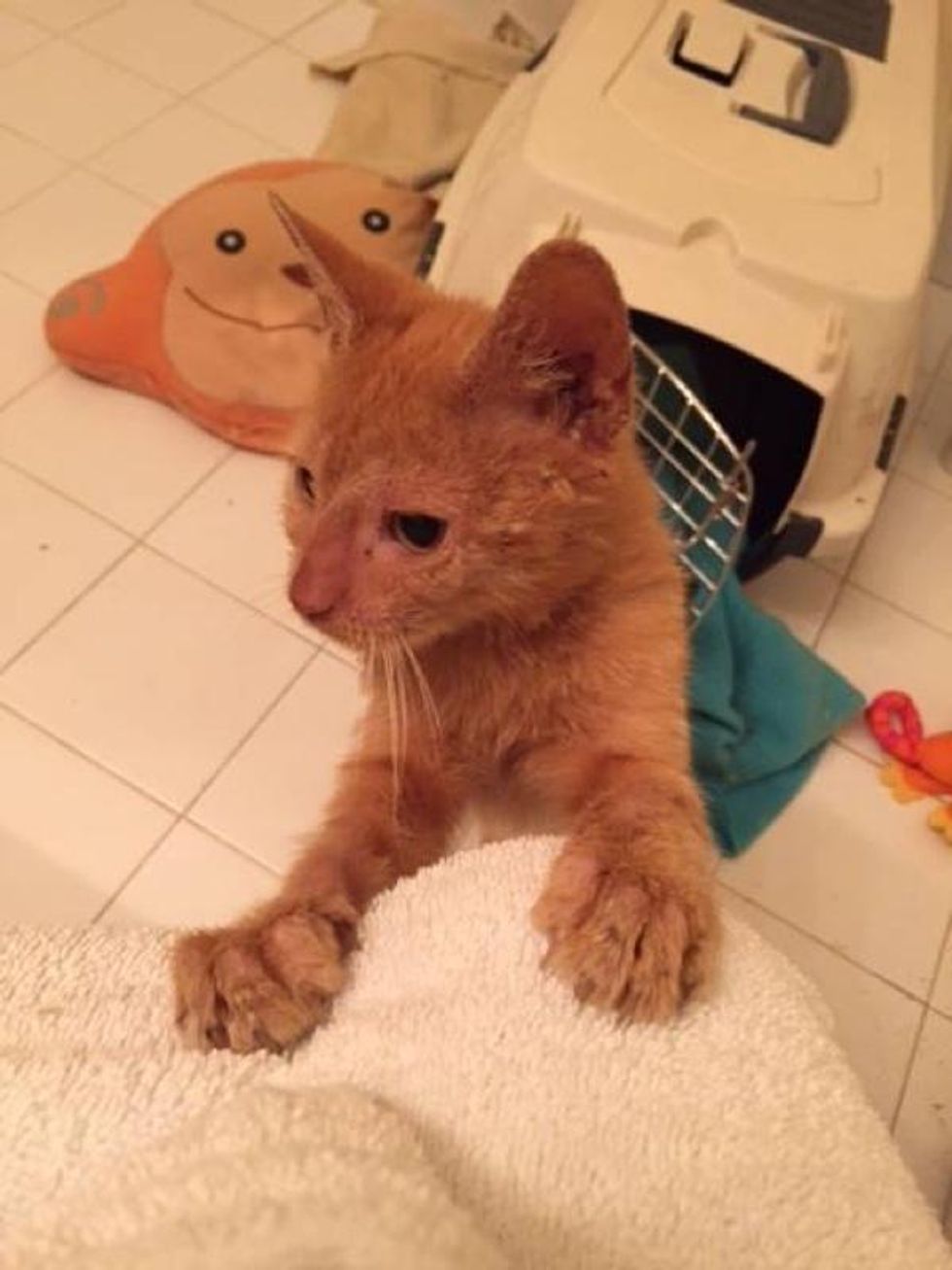 A year ago Carmen Weinberg, founder of Animal Friends Project, got a call about a sick kitten wandering around at a mobile home park. When she got there, she saw a sweet ginger kitty with the saddest face. "I found this precious boy looking like this.. it broke my heart," Carmen said.