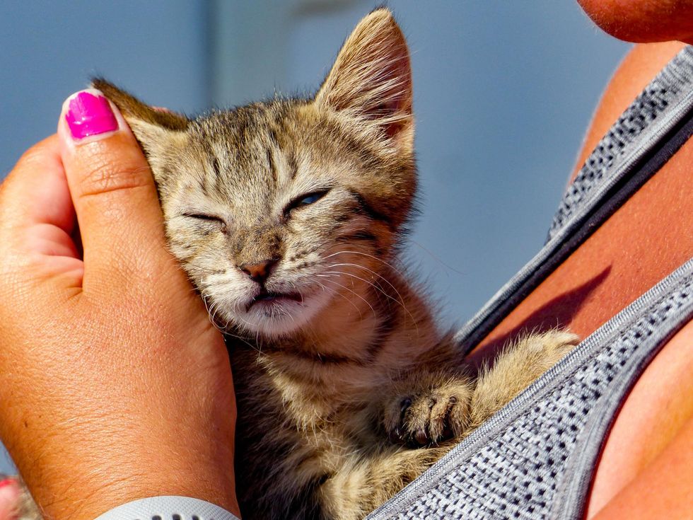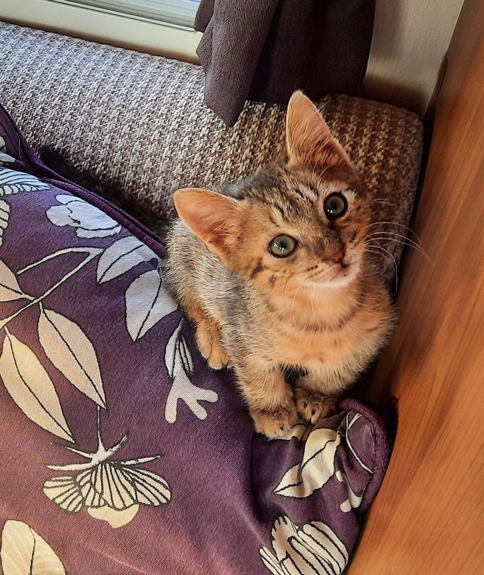 "We were in Evia parked at a beach about 10 days ago, and this little kitten just came over to us," Claire told Love Meow. "There were no other tourists around and the only local was an old man taking a walk."