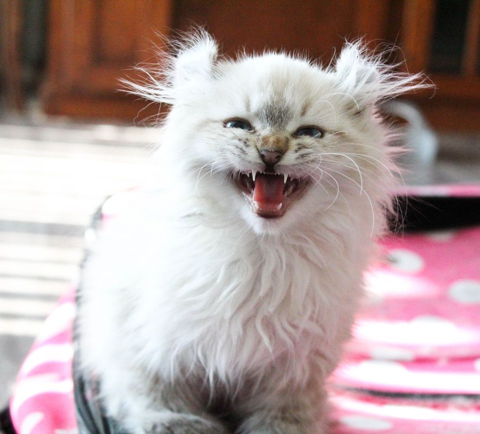The little guy was very vocal from the beginning and wouldn't take no for an answer. "He is a very needy kitty who screams 24/7 for attention and food. The second you stop petting him, he cries."
