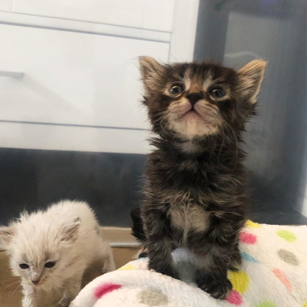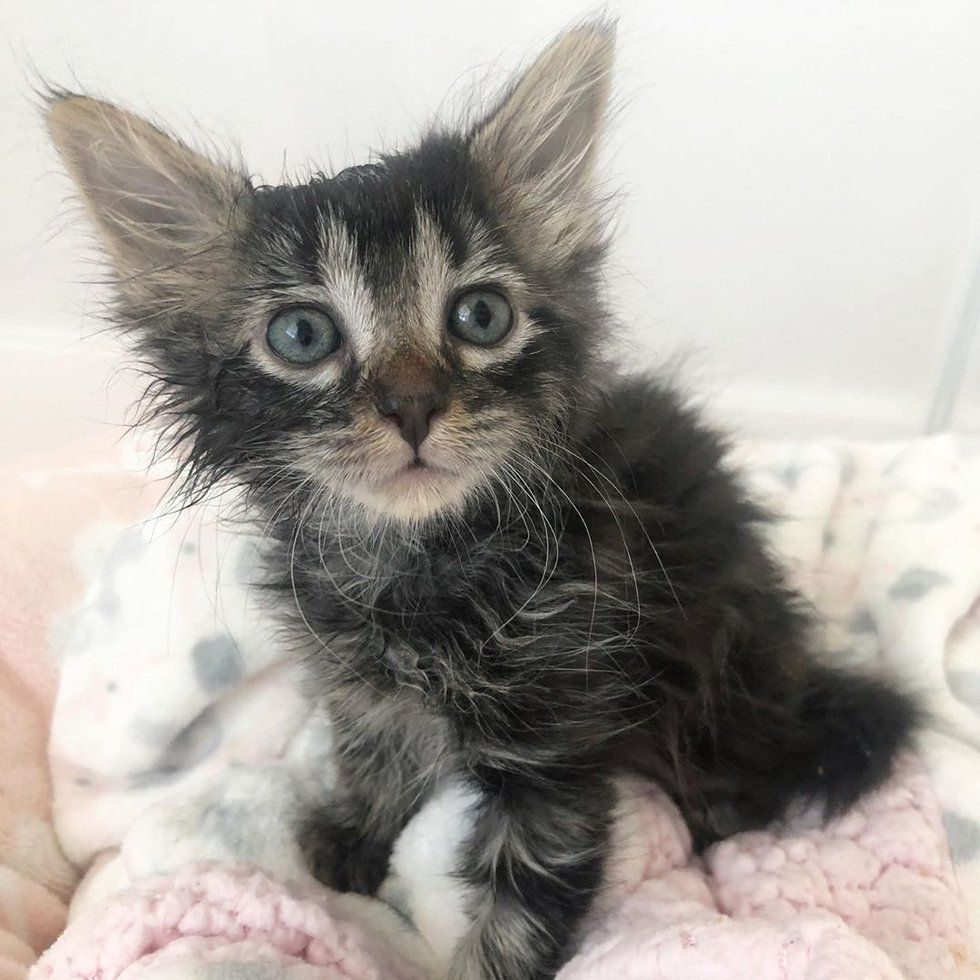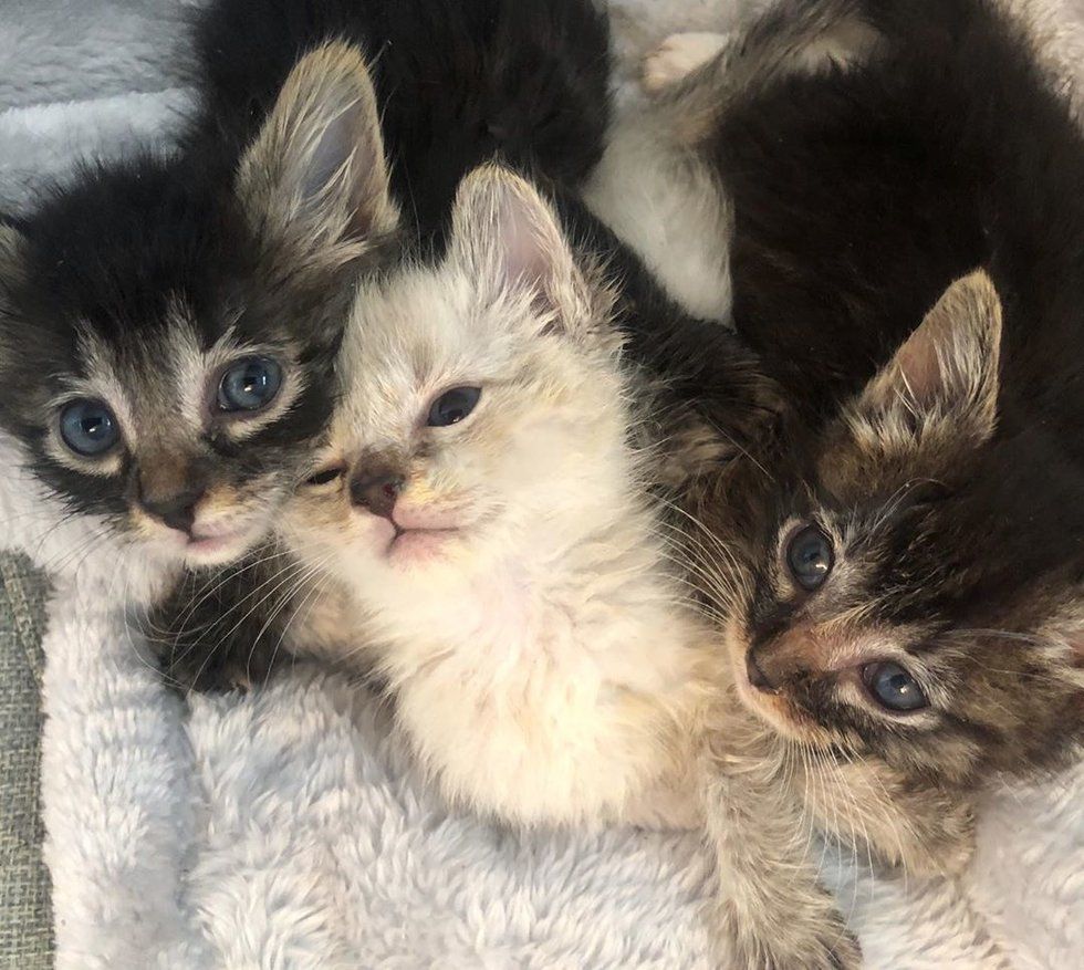 "They were severely malnourished and very dirty. I got the babies bathed as much as possible for the first night," Patricia wrote. After getting a full belly, the kittens fell asleep cuddling together in their new warm bed.