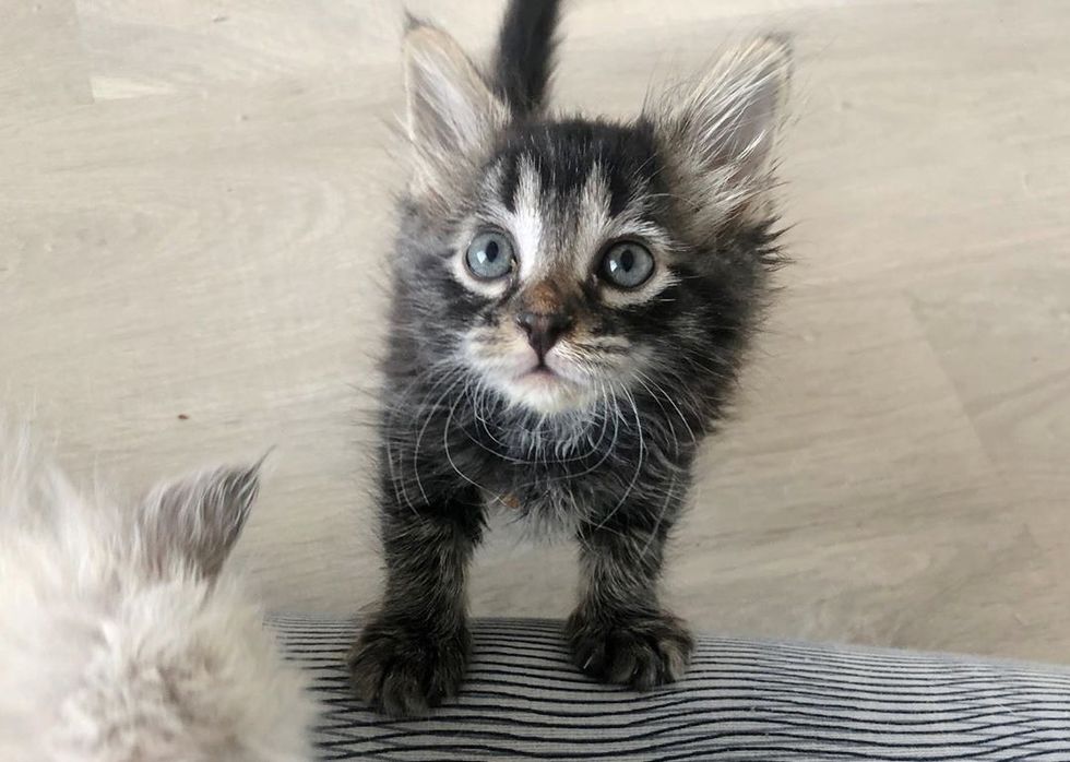 Little Fanta, the fluffy tabby, quickly proved to be a cuddle-bug. At an early age, she was the first to venture out of their nest and the bravest, most demanding one when it came to food and cuddles.