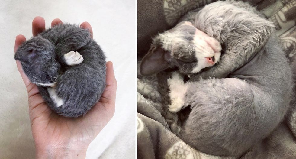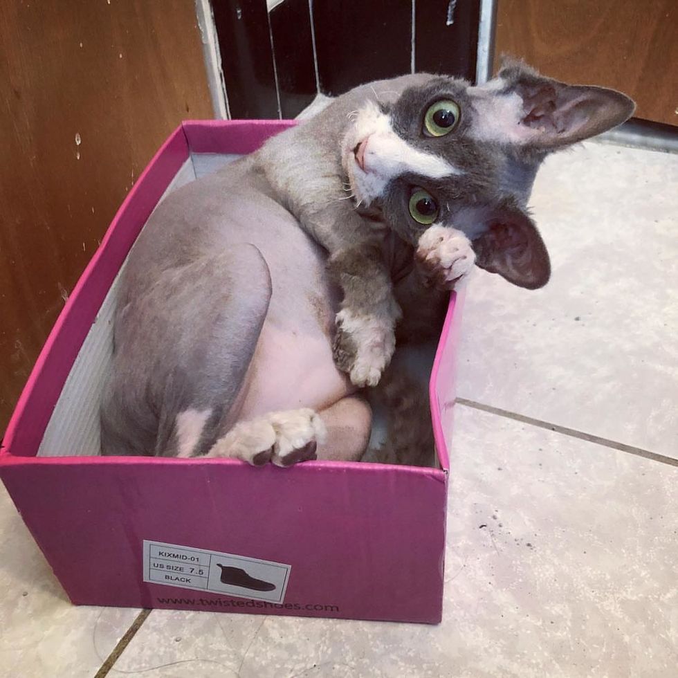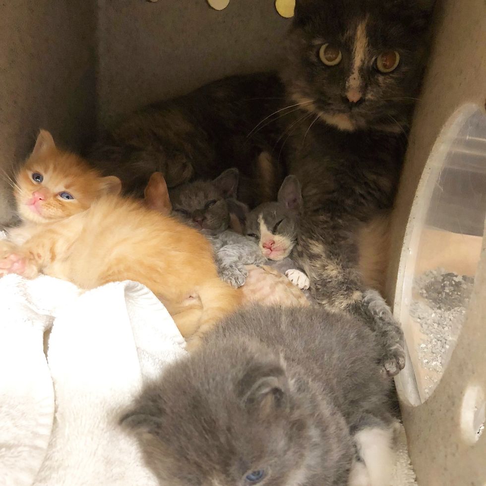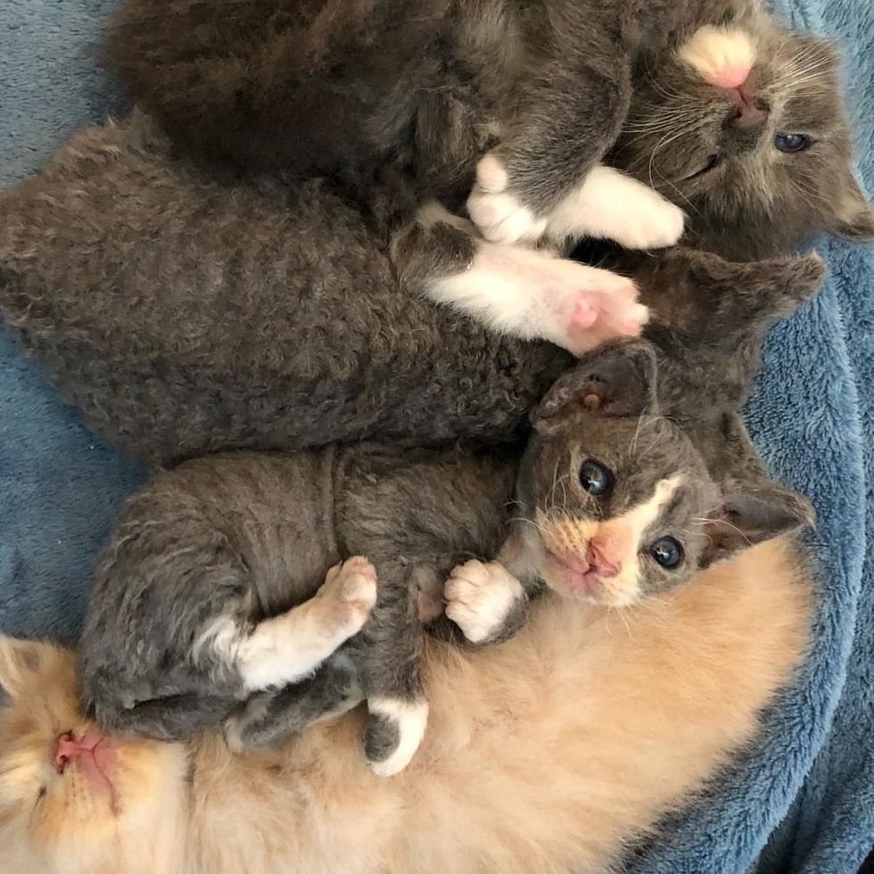 Amanda arrived at the shelter the next morning and was immediately told about the little family. "His mother was an FIV positive, long haired diluted tortie and three of his siblings were long haired as well but not Meeseeks," Amanda said. "He was what appeared to be a Devon Rex Mix."