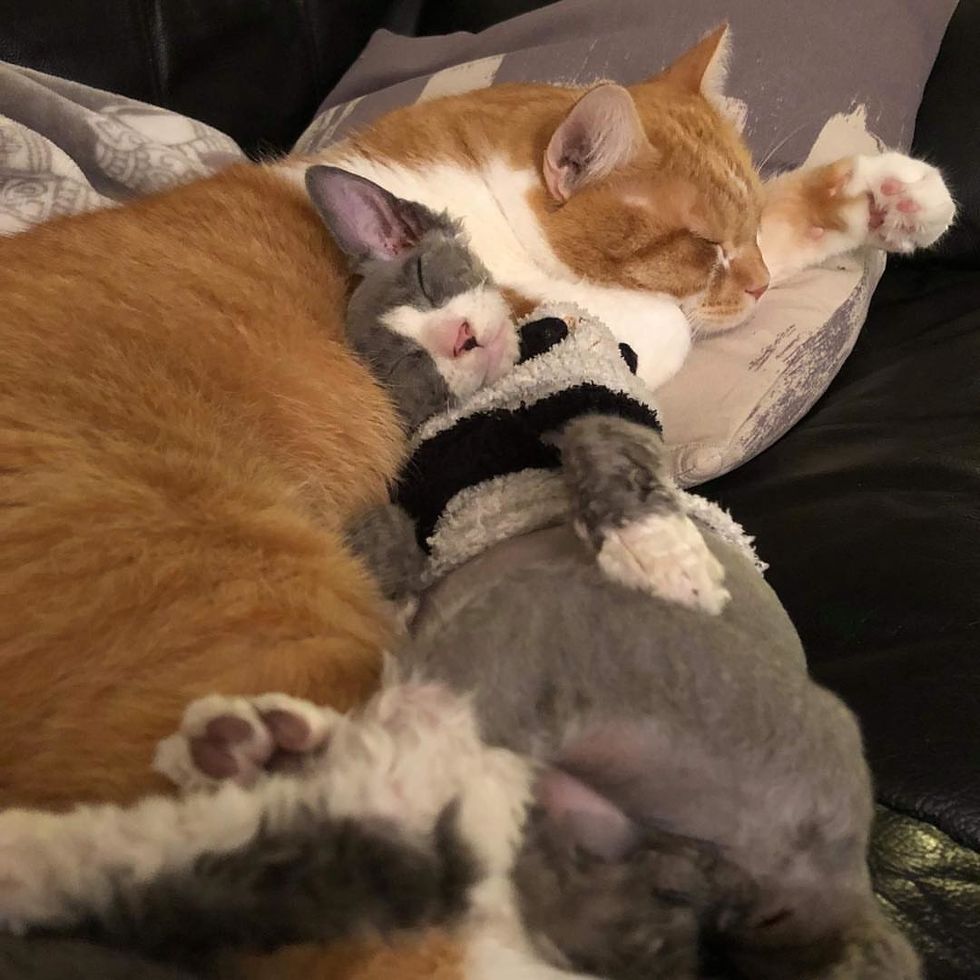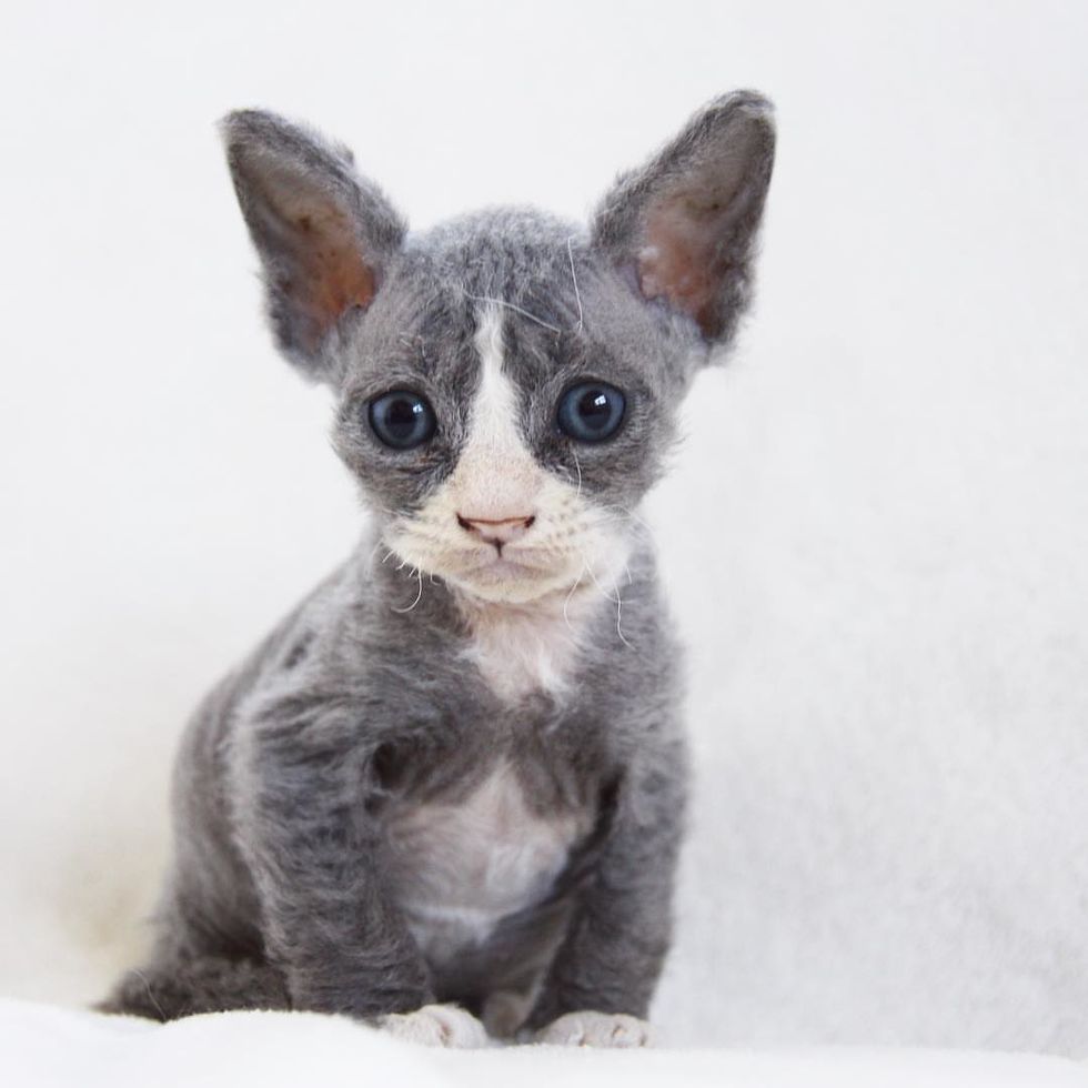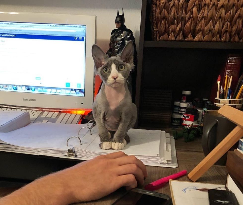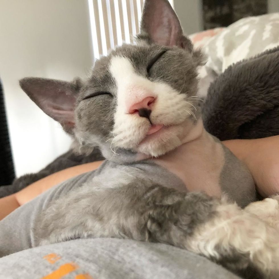 Amanda arrived at the shelter the next morning and was immediately told about the little family. "His mother was an FIV positive, long haired diluted tortie and three of his siblings were long haired as well but not Meeseeks," Amanda said. "He was what appeared to be a Devon Rex Mix."