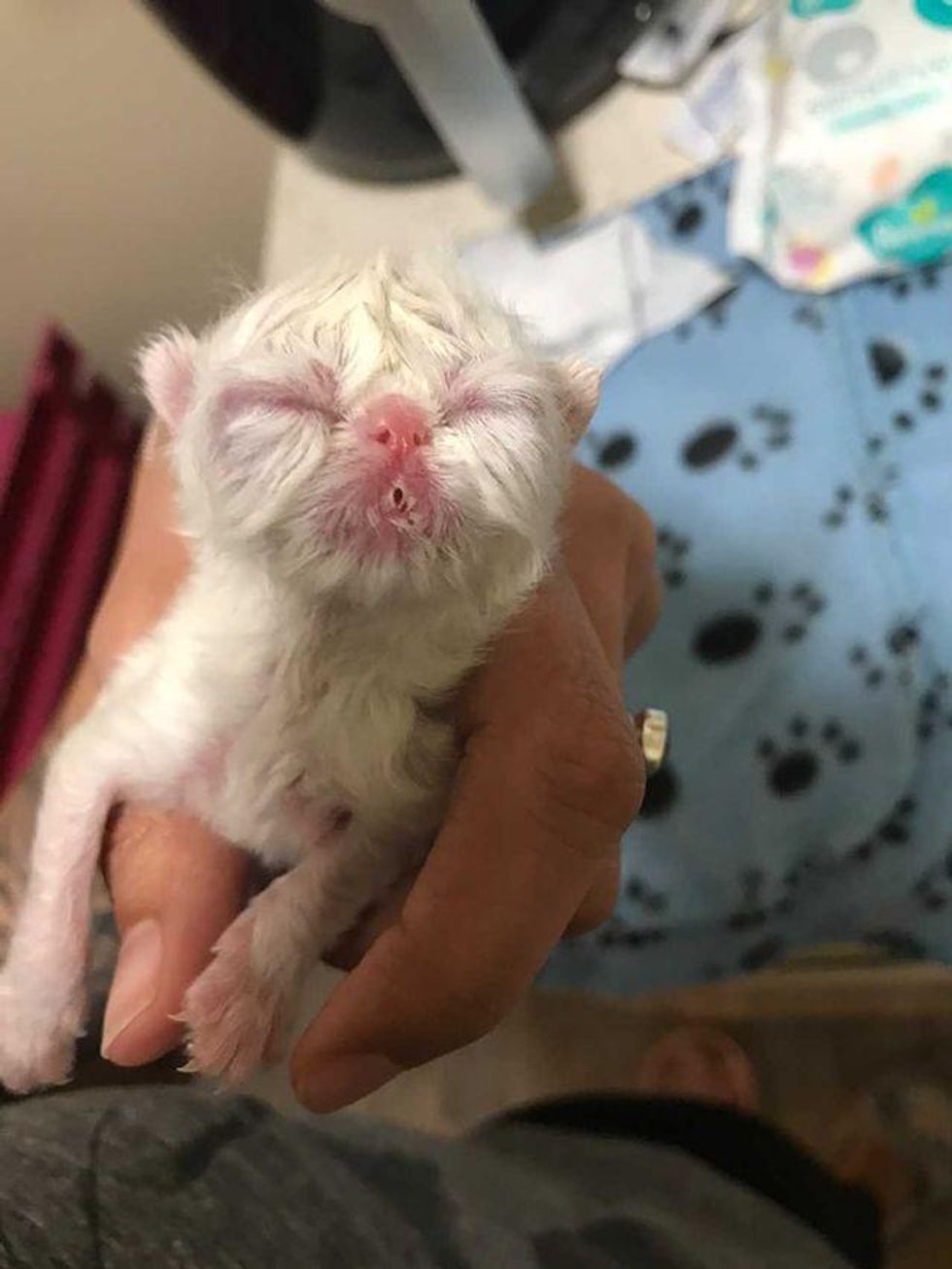 Stephanie Medrano, a fosterer of Stray Cat Alliance (in Los Angeles), received an urgent plea about a tiny newborn Himalayan kitten needing rescue. The little guy was born with twisted hind legs and a cleft palate. Despite it all, the kitten had a good appetite and was in good spirits, showing a strong will to live.
