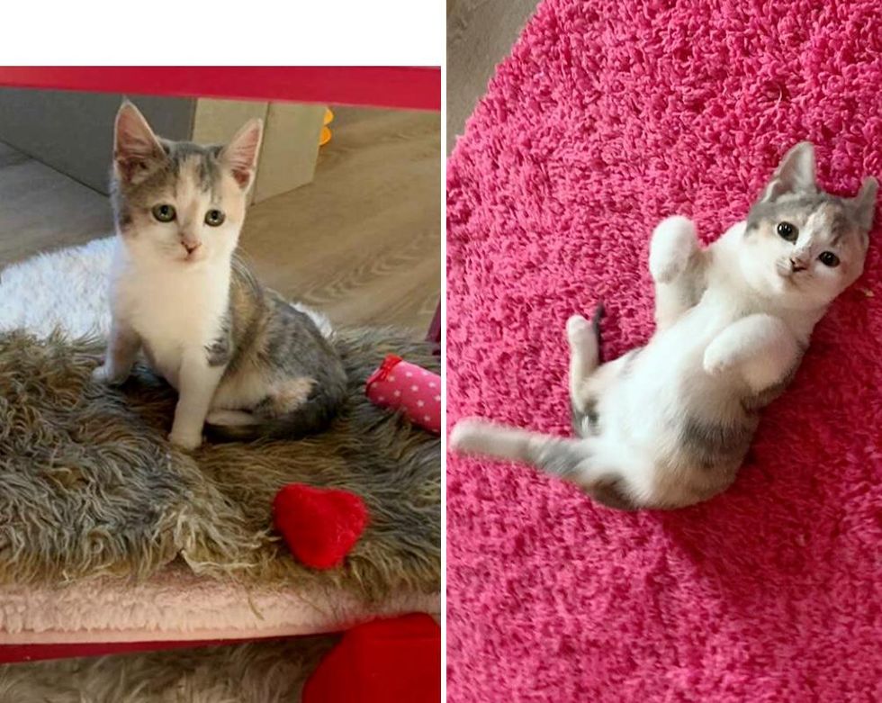 The sweet kitten will never have to spend another day on the streets. She is completely back in her element being an indoor cat, spoiled and loved.