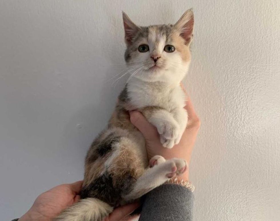 A resident who lives in the countryside of North Carolina, spotted a cream calico kitten outside her driveway. The little stray was cornered by a few other outdoor cats, who were trying to "pin her down."