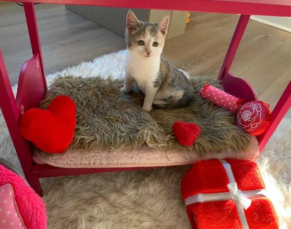 She loves her little doll bed and kitten-sized pillows, cushions and blankets. She is packed with energy and doesn't lack an ounce of affection.