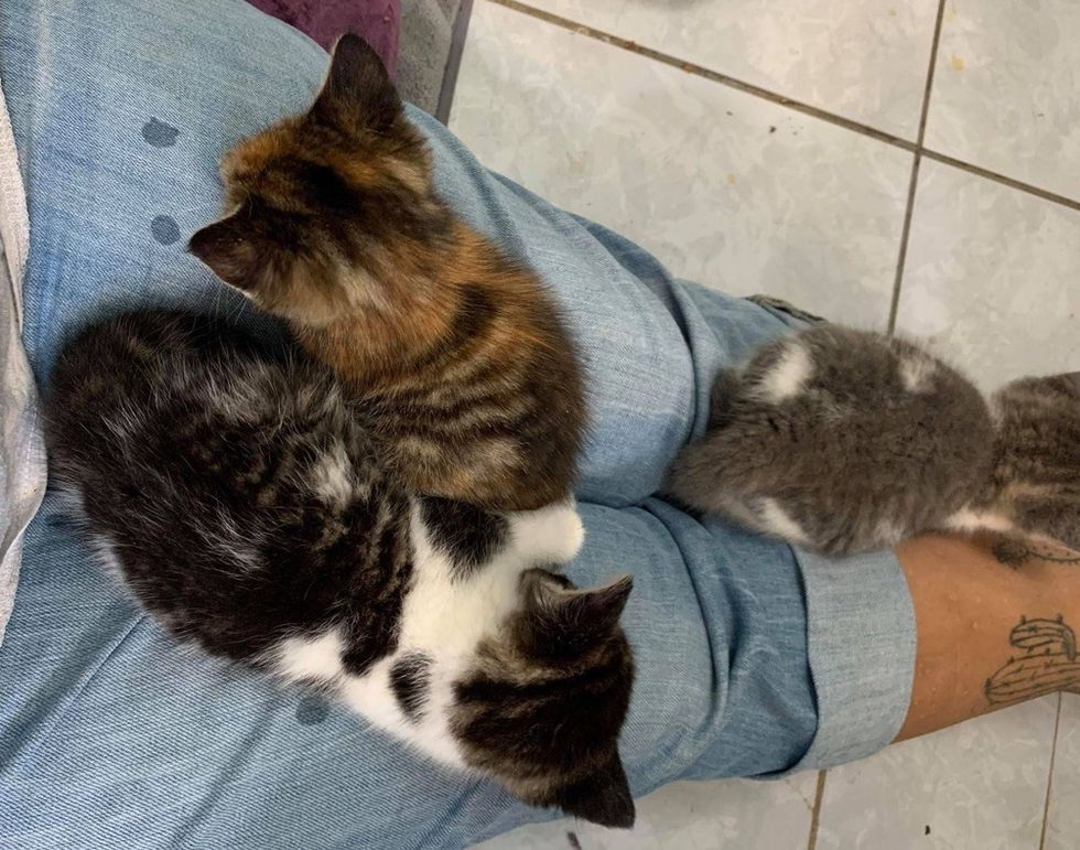 They would hop onto their humans' lap and even attempted to crawl onto their shoulders. Vicky looked around the area for other kittens but couldn't find anymore.
