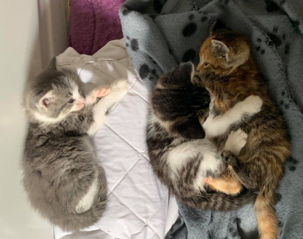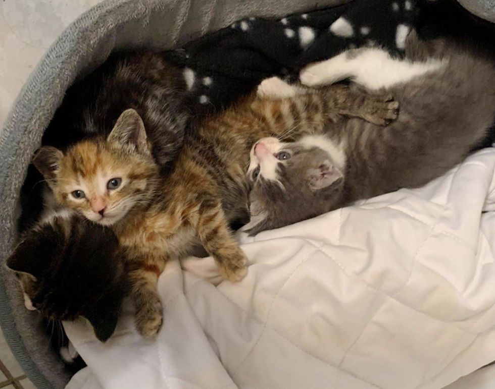 The little ones were about three weeks old and would need round-the-clock care. Vicky made a makeshift cat house for the trio and brought them a warm bed, blankets and toys.