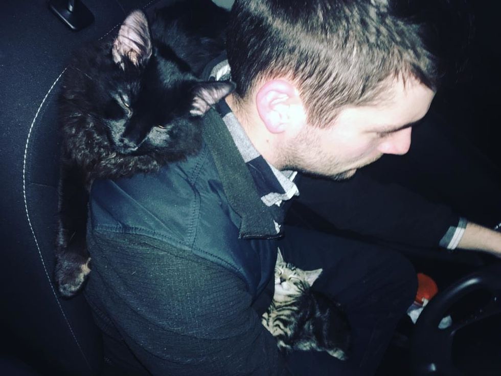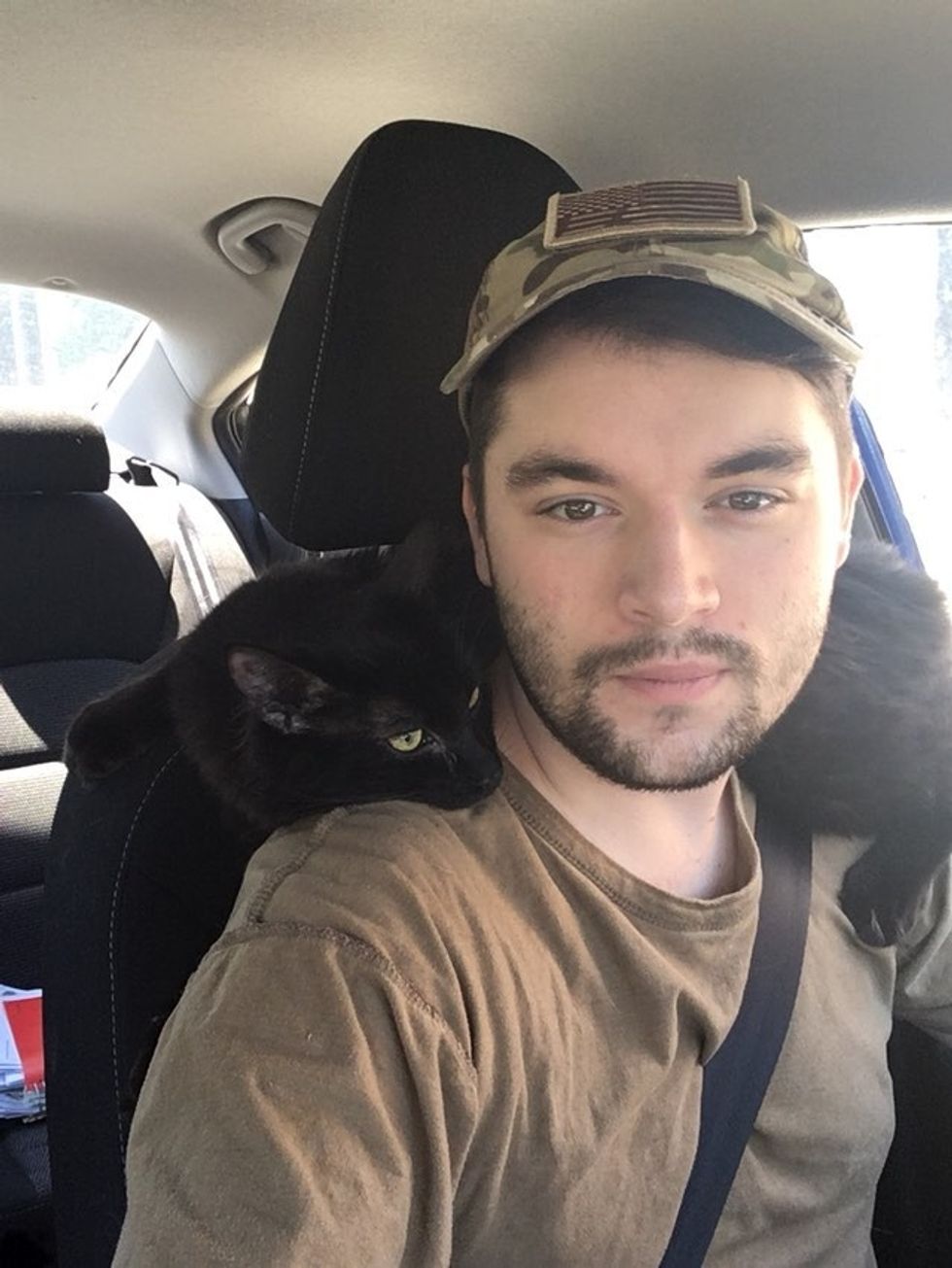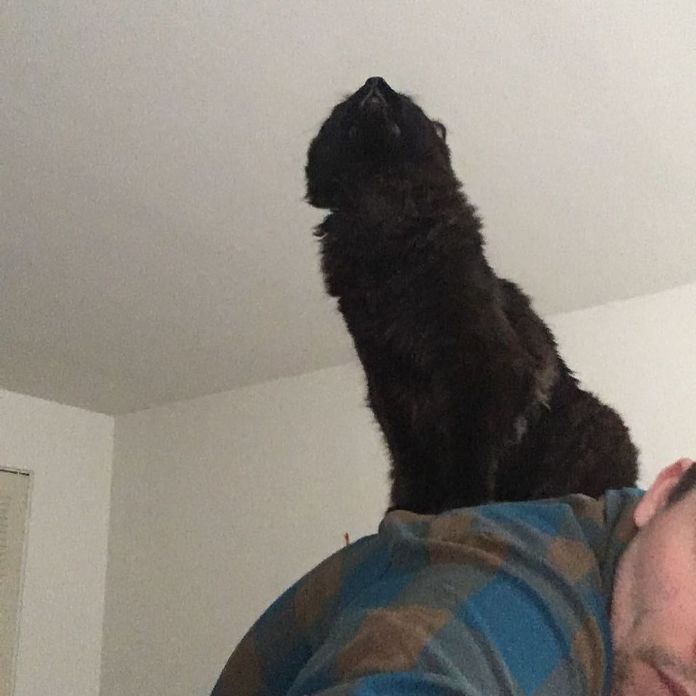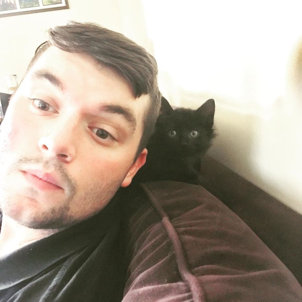 Jesse often finds his fluffy companion wrapped around him like a scarf or a hat, rumbling with his little purrs into his ears.