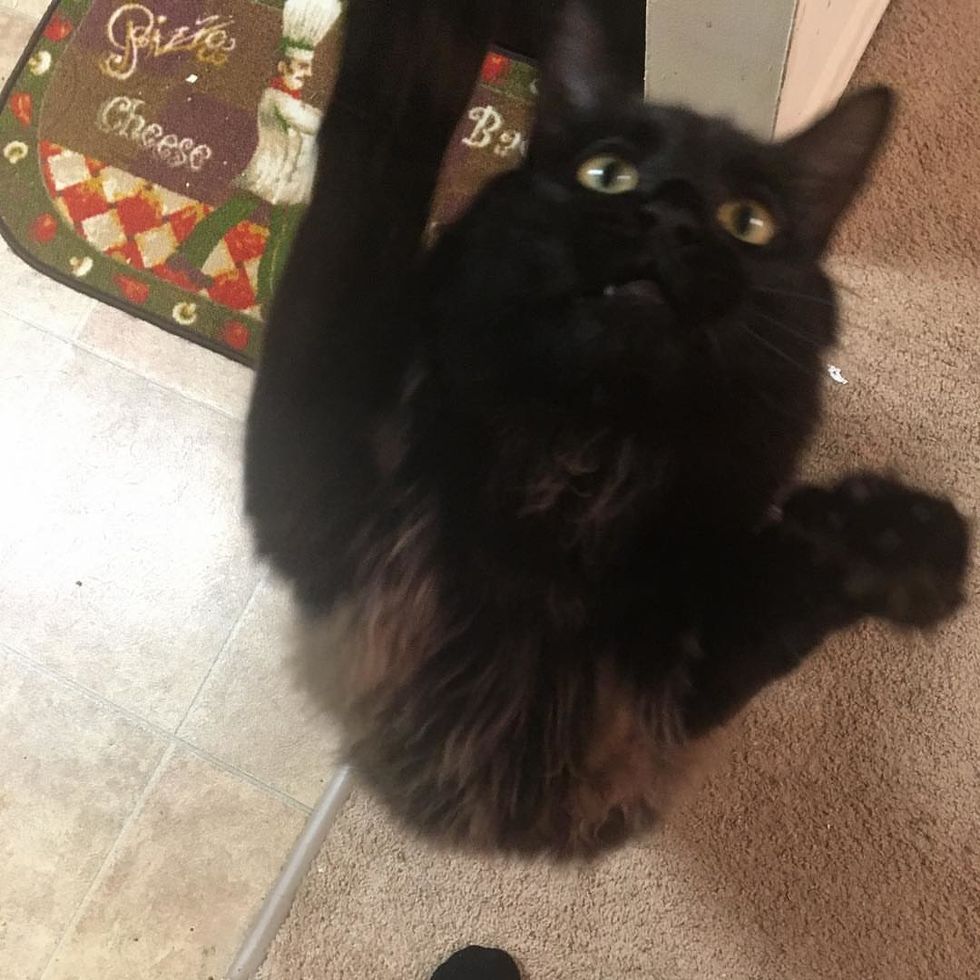 The kitty has blossomed into a magnificent cat, but some things never change.