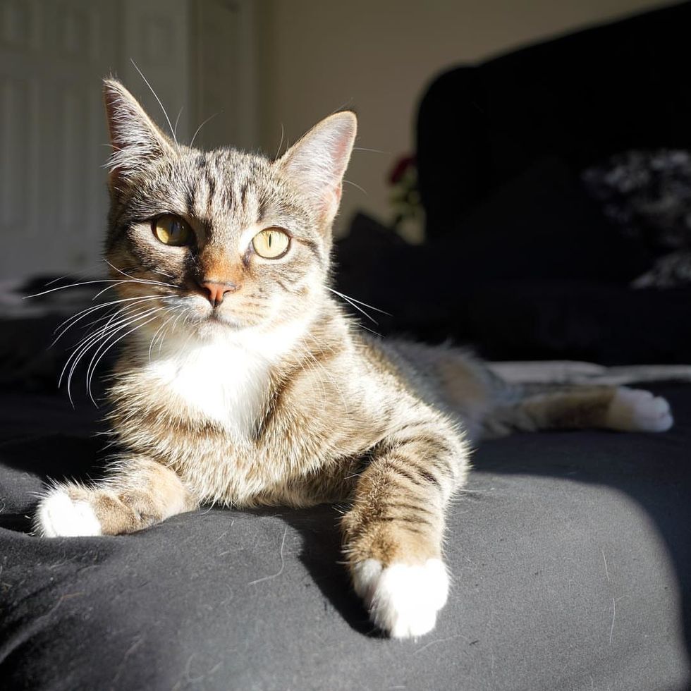 After five months, she's gone from that terrified, hissy kitten to a confident love-bug.