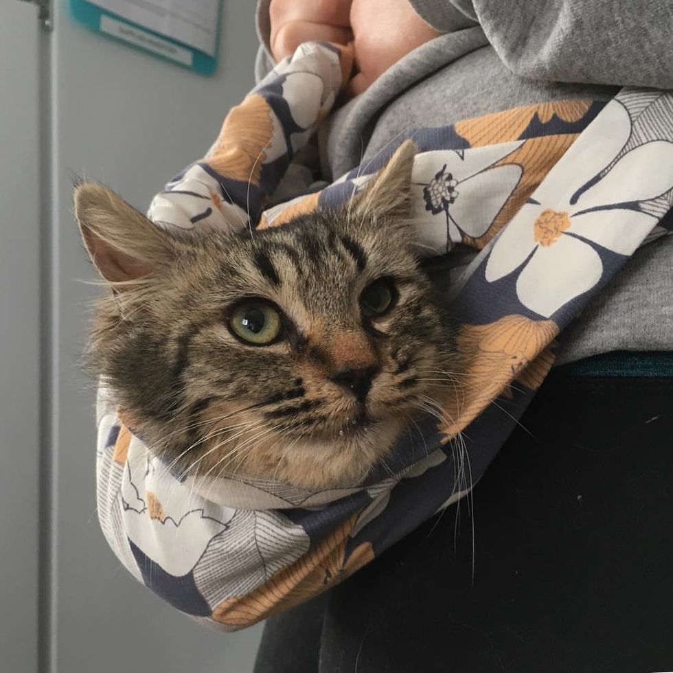 The little tabby was given plenty of one-on-one interaction each day. "Carrying her around in the body sling proved to be very helpful, and combing and brushing have all helped teach her that human hands aren't necessarily bad," Kitten Rescue told Love Meow.