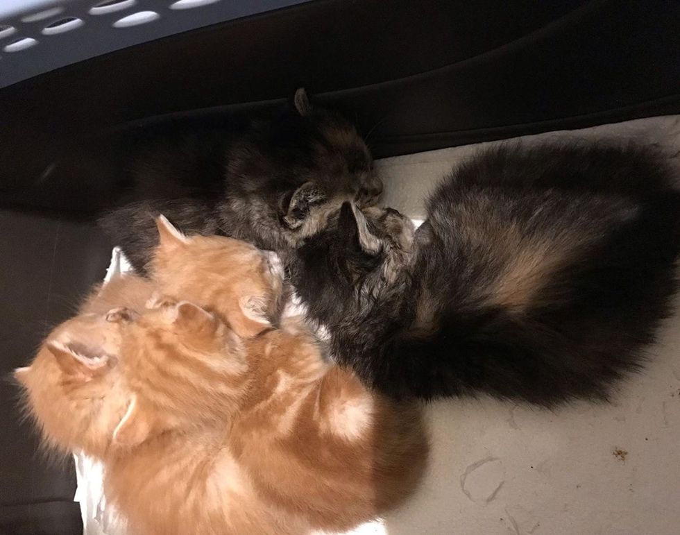 Malia from New York was at Co-Op City Field in the Bronx for her son's baseball game when she heard commotion from a crowd. A litter of kittens were found huddled up together in the field.