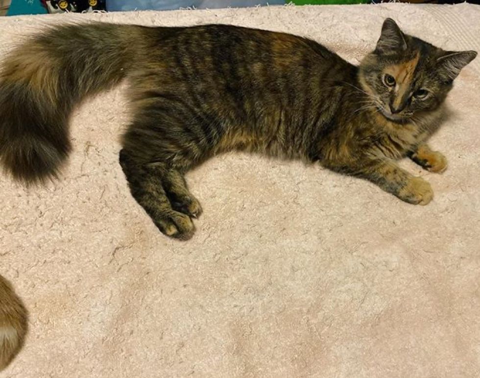 All grown up now, the tortie girl is still the same spitfire that they met on day one.
