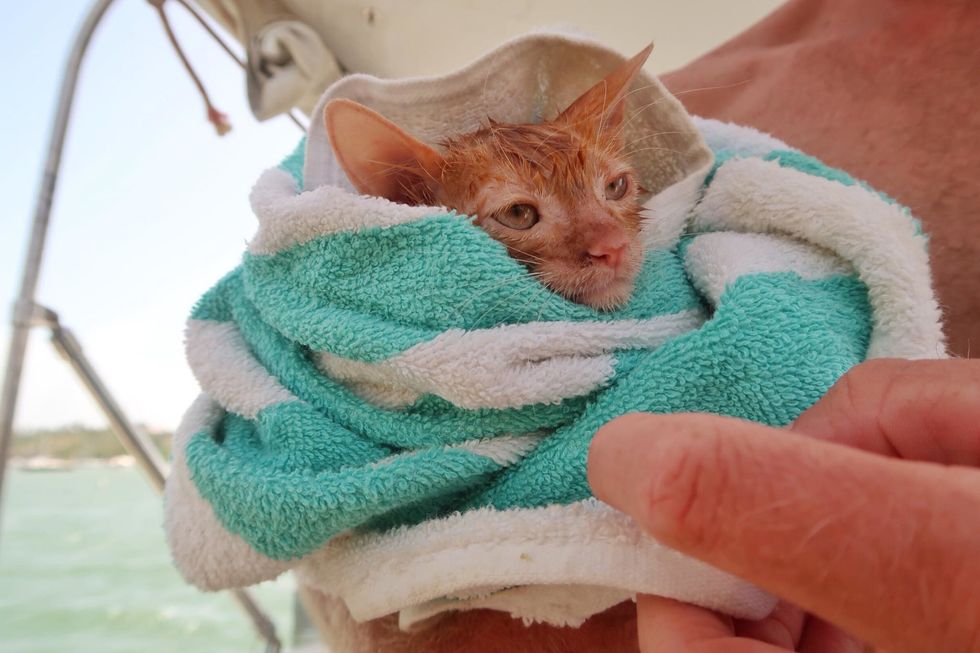 Kach Howe and her husband, Jonathan, who travel around the world on their sailboat, learned about the kitten's plight. The tiny ginger boy looked just like their cat, Captain Ahab that they had adopted from Florida Keys SPCA, but tinier.