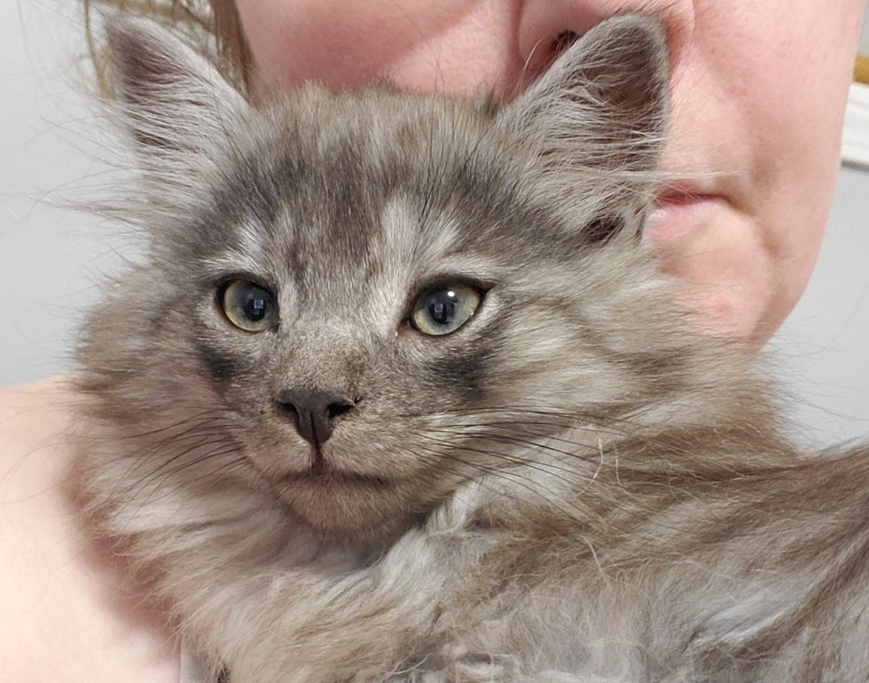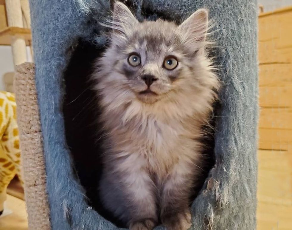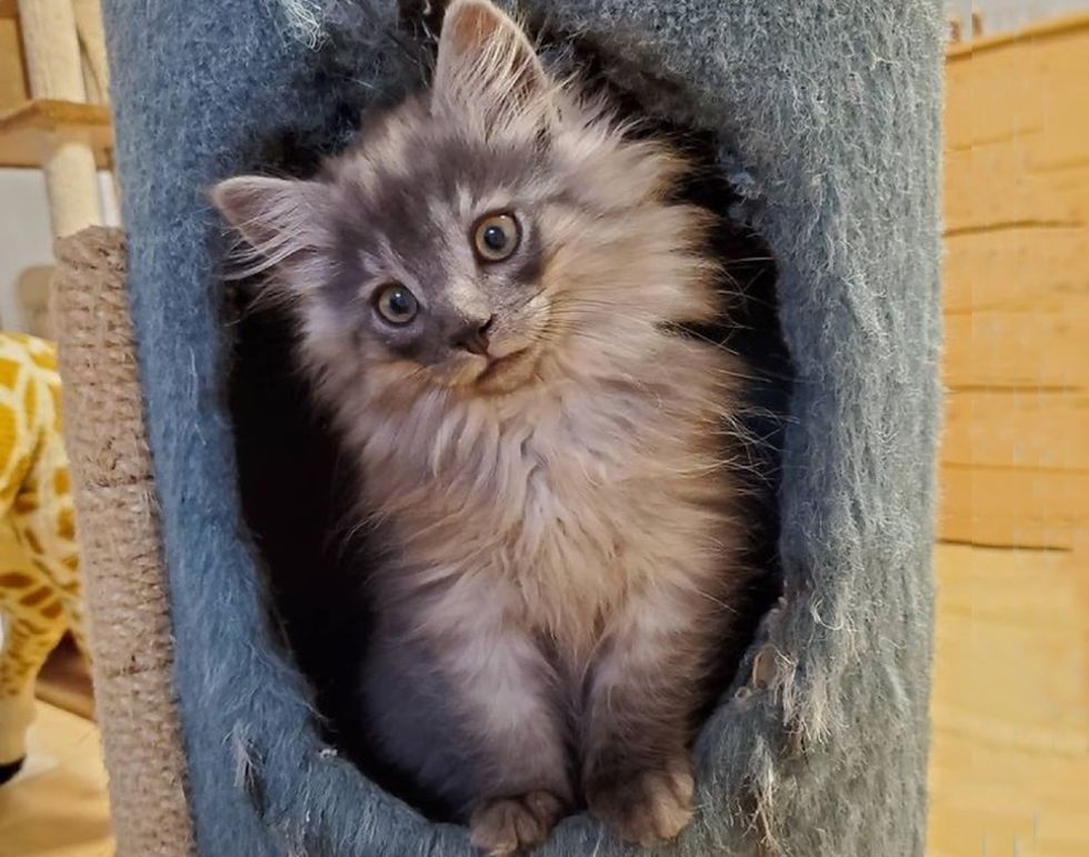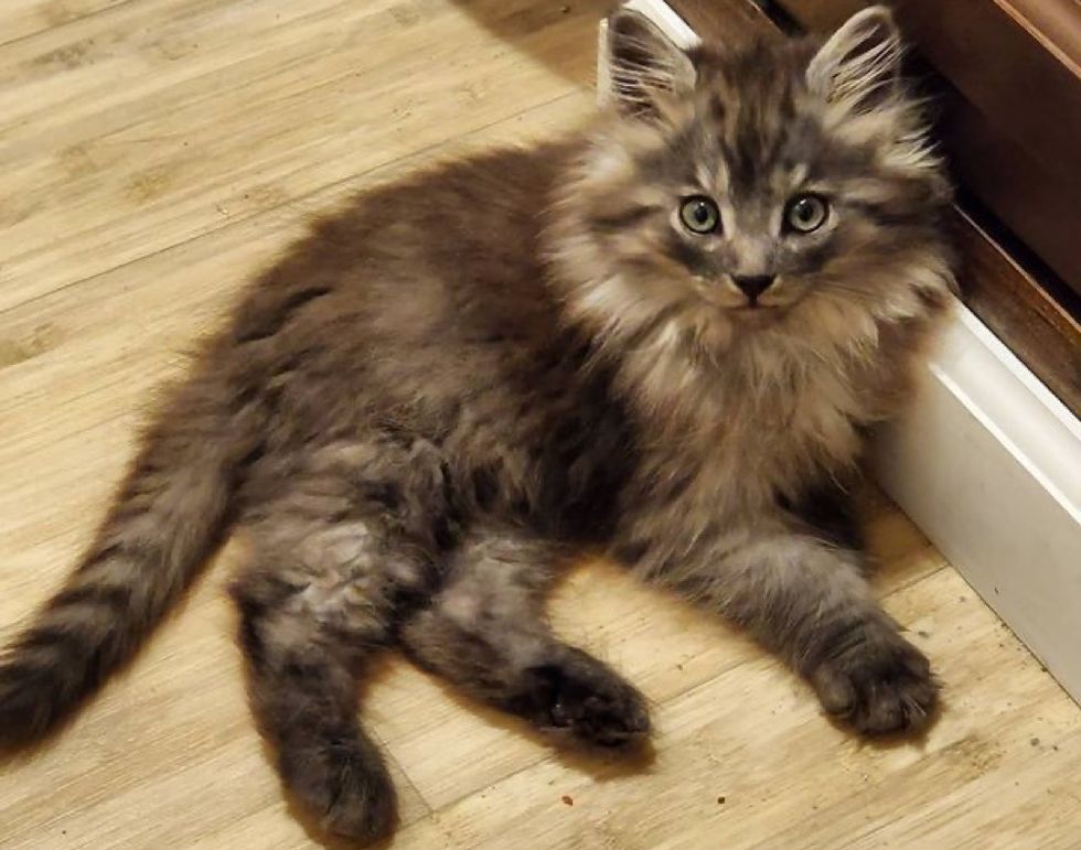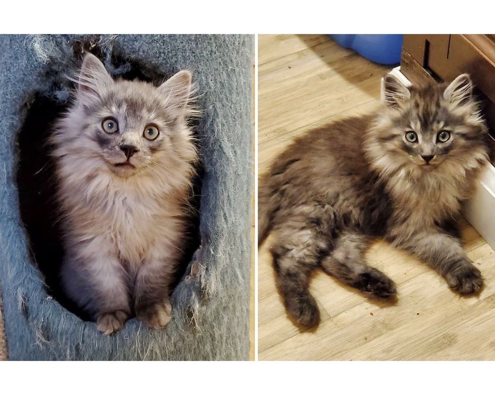 A fluffy kitten who was found on a farm with his sister, really came around when he discovered joy in a foster home.
