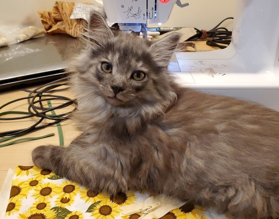 The fluffy kitty is loving his VIP life as an indoor cat. He continues to help his sister gain confidence while he runs around the house like he owns it.