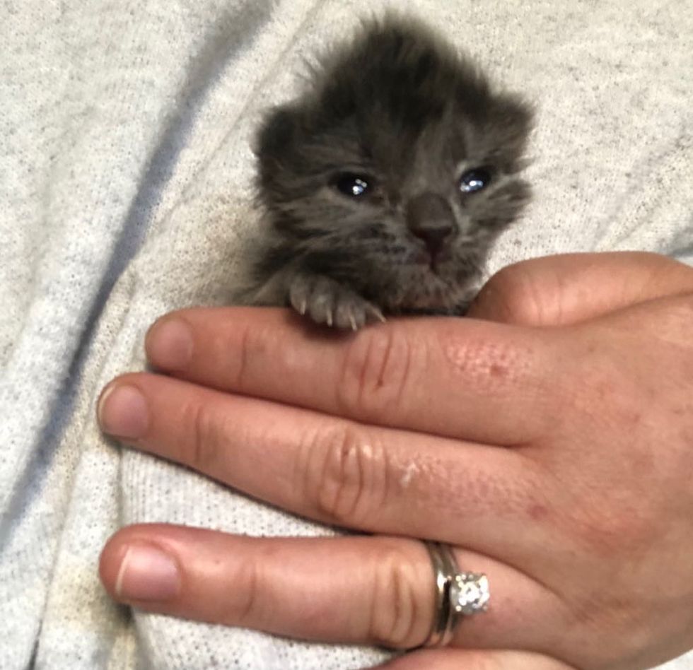 "She was quite underweight and required tube feeding," Shelbi told Love Meow. "At six days old, she was the weight of a 2 to 3 day-old kitten."