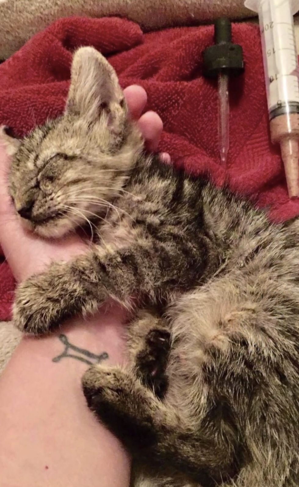 The 6-week-old kitten was in poor shape when Moonglade Rose and her partner found him at the gas station. The kitten was barely breathing but the couple refused to give up.