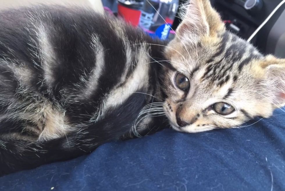 A couple stopped at a gas station while they were on a road trip crossing Louisiana. As they got out of their car, they found a tiny kitten sitting in a puddle of gasoline. They knew they had to save him.