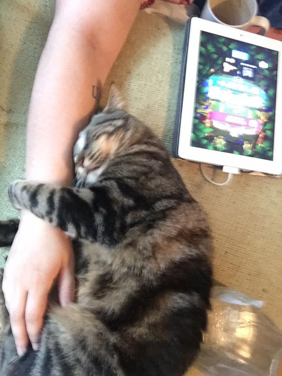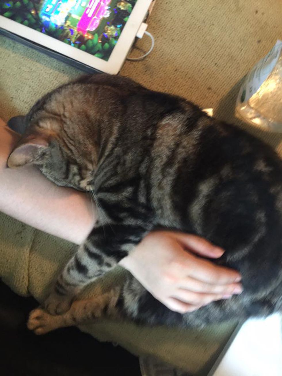 Andy makes sure his human mom is never alone by showering her with cuddles.