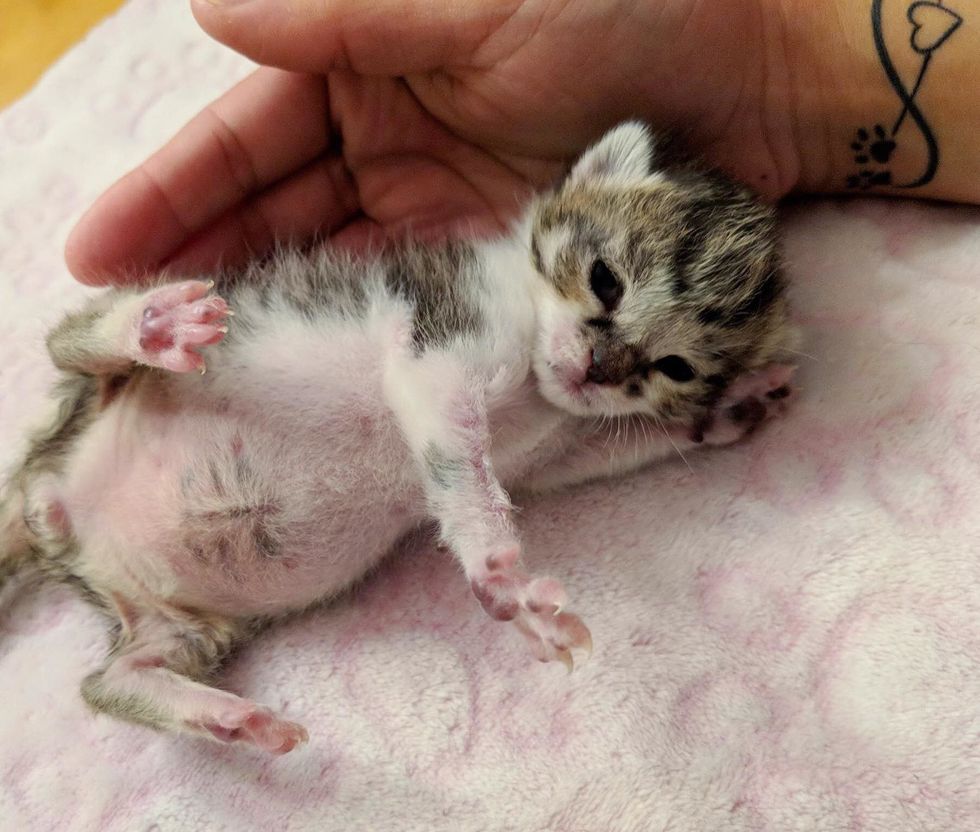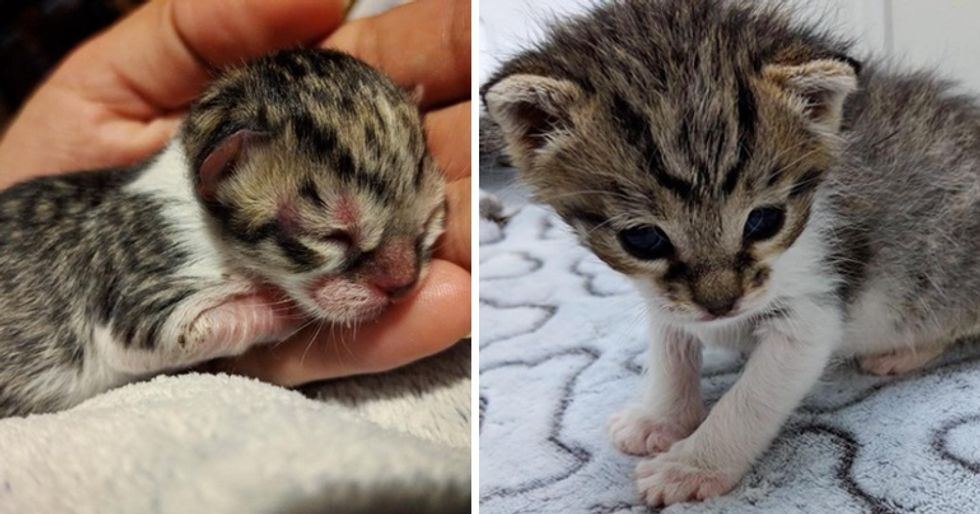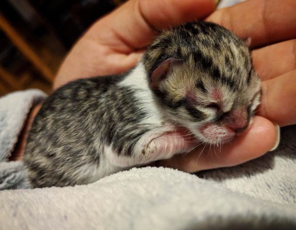 When Jessica tried to feed him the first time, he latched on right away. At just one day old, the little feline had the heart of a warrior.