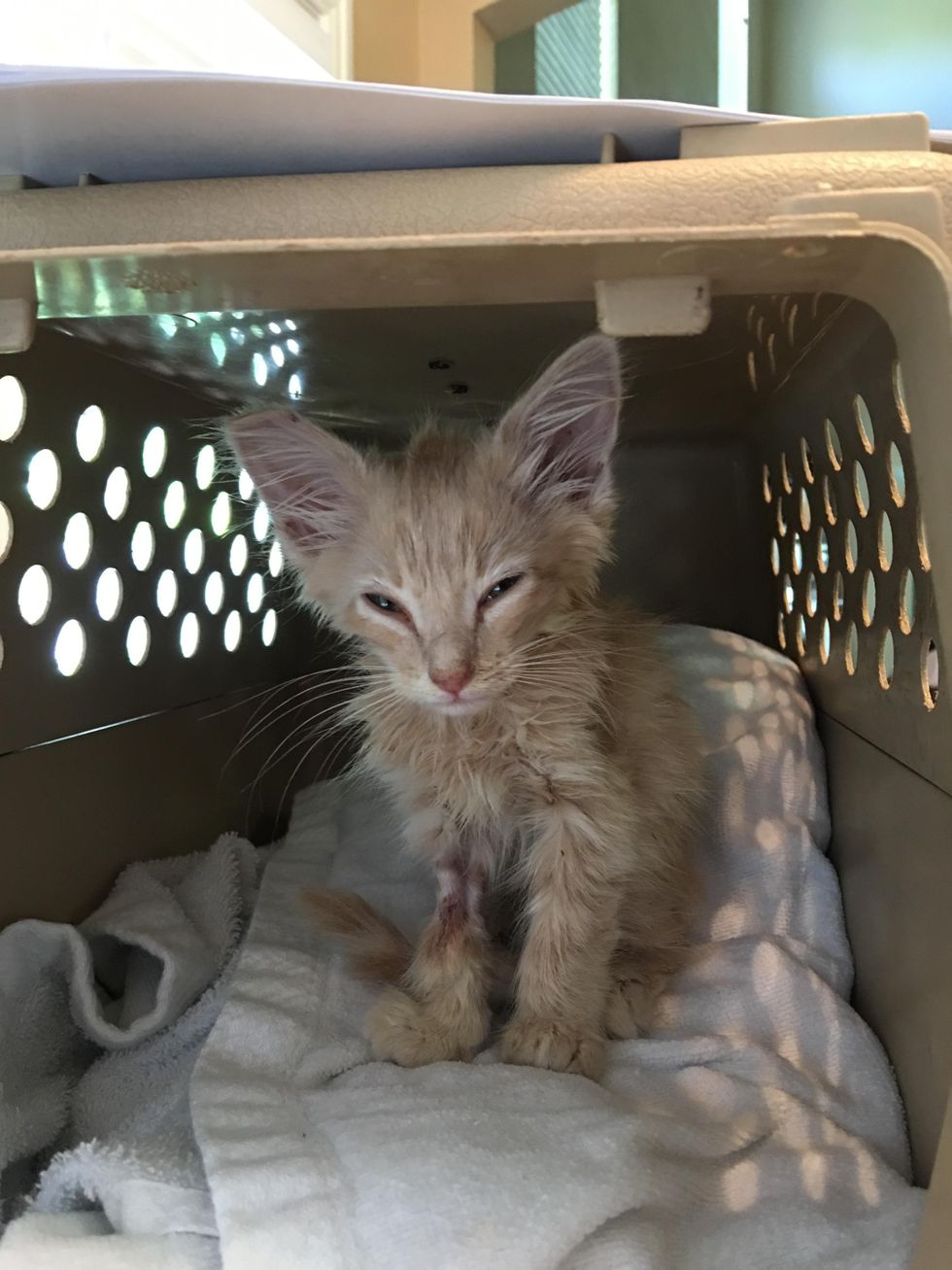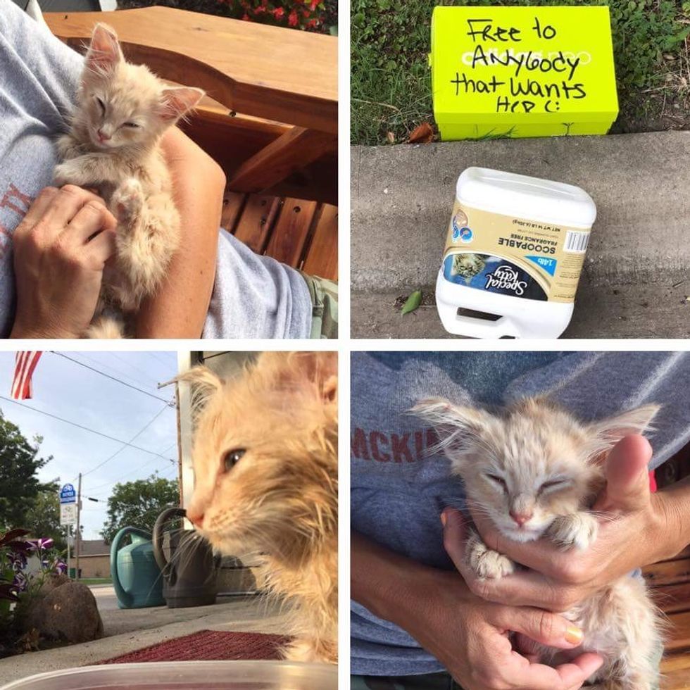 A kitten was found left in a box on the curb on a hot summer day this June. A good Samaritan from Texas was shocked to hear meowing coming from the box.