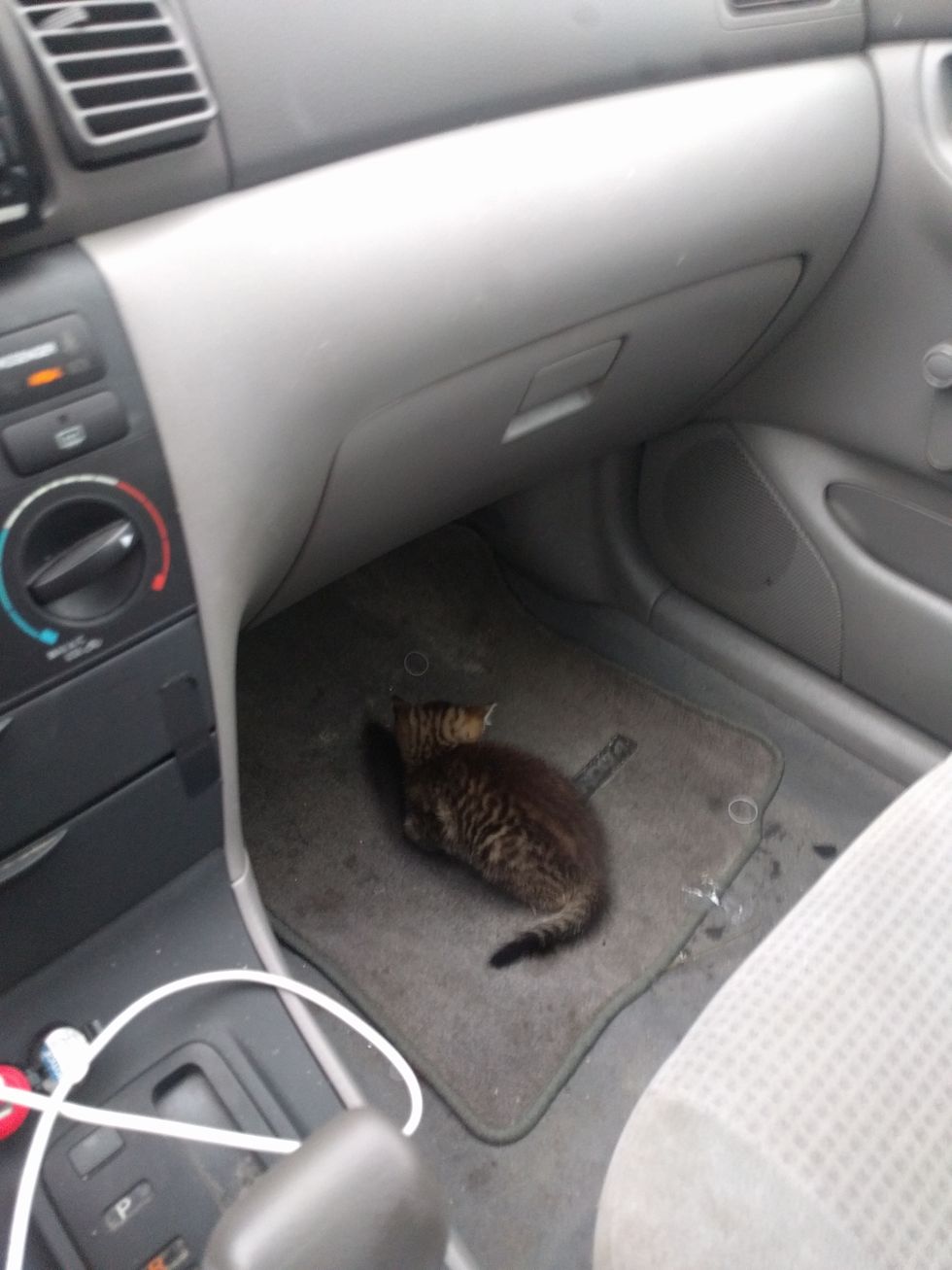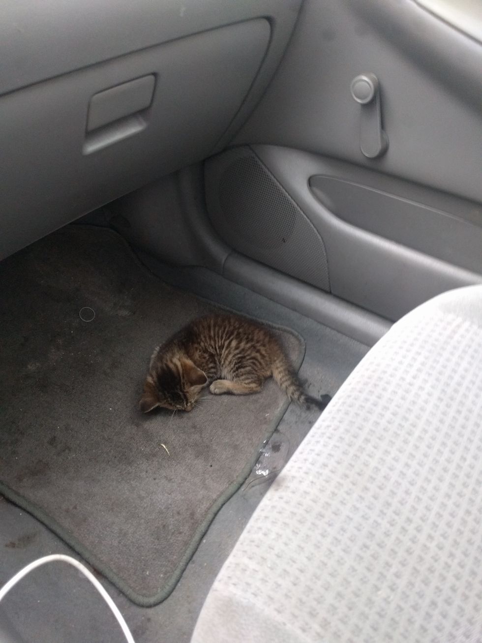 He was surprised and relieved that the kitten was still alive so quickly got out of his car, picked her up and took her to the vet.