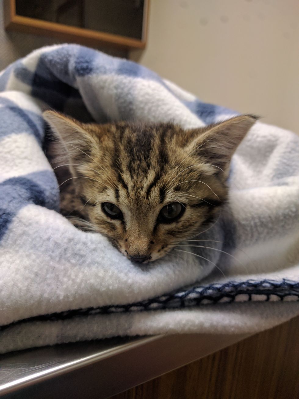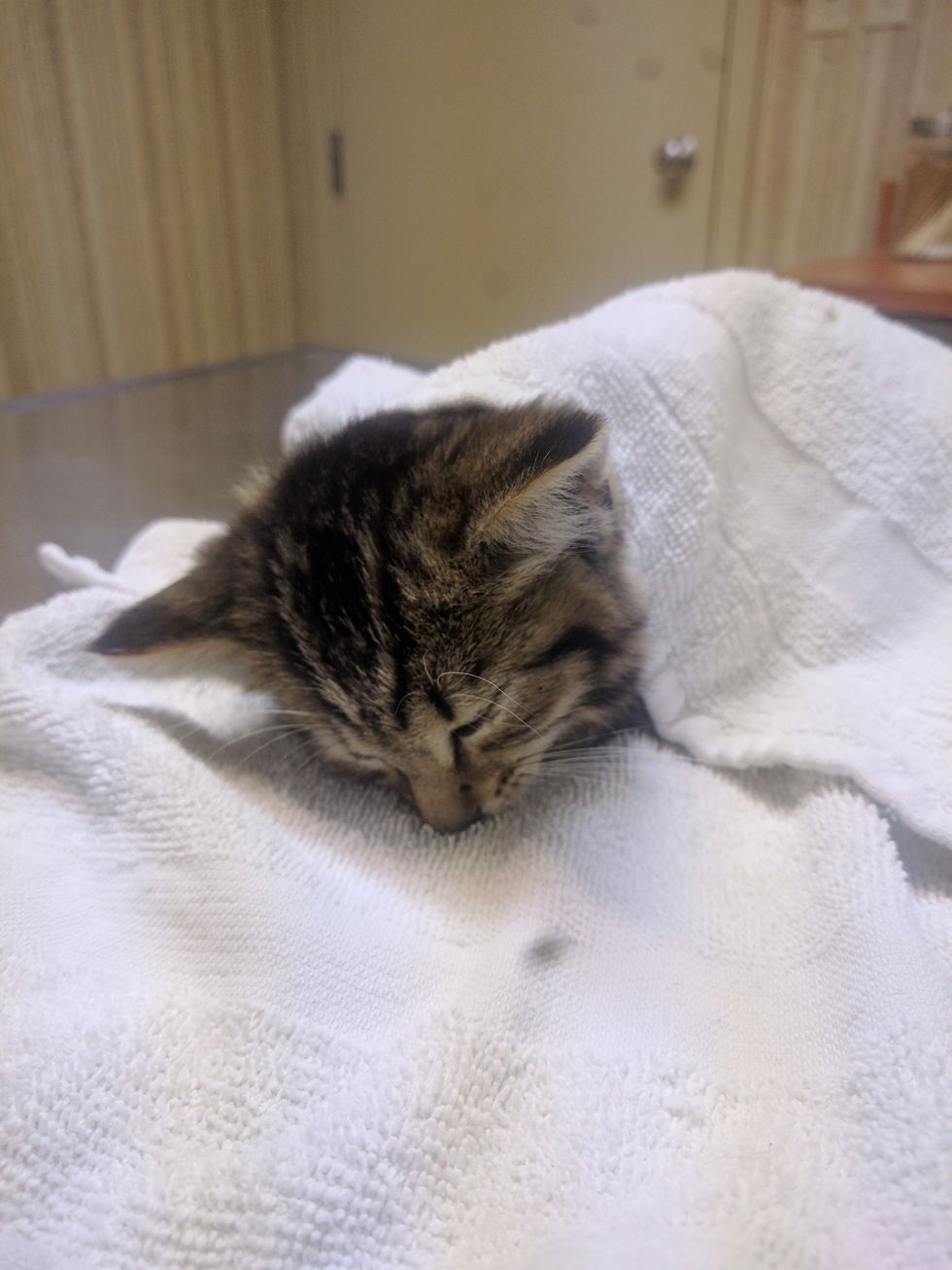 The kitten stayed at the vet clinic that day so she could be closely monitored. When the man called them at 4PM that afternoon, the little feline hadn't had much improvement. They were hoping that things would turn around for the kitten overnight.