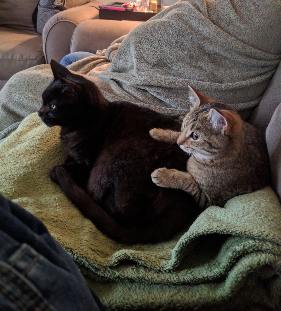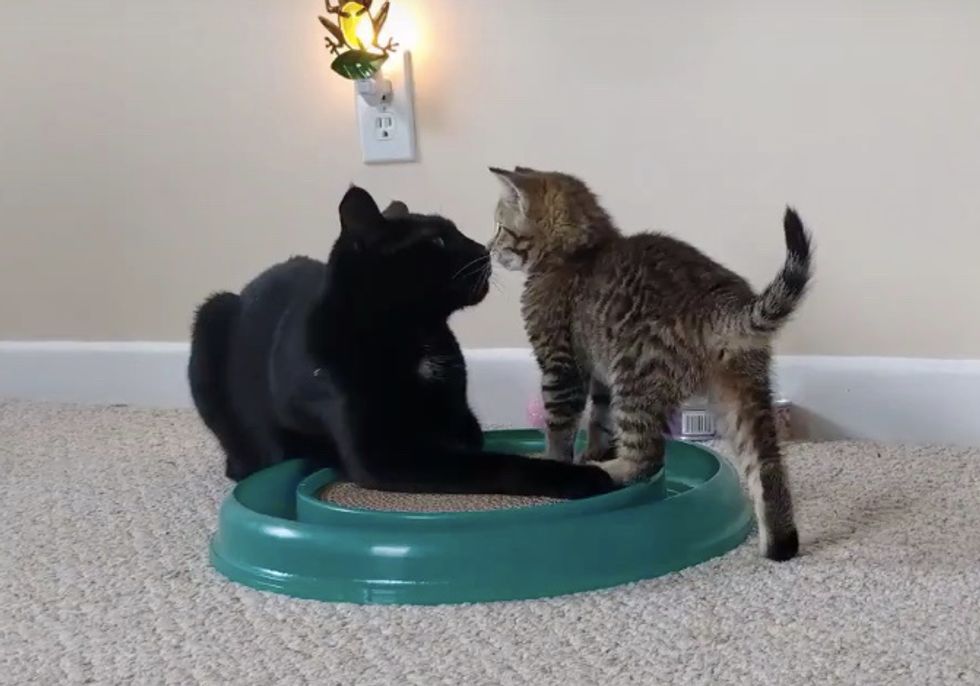 They introduced her to their two resident cats, Tycee and Willyum, who took to the little new kitten and became her family.