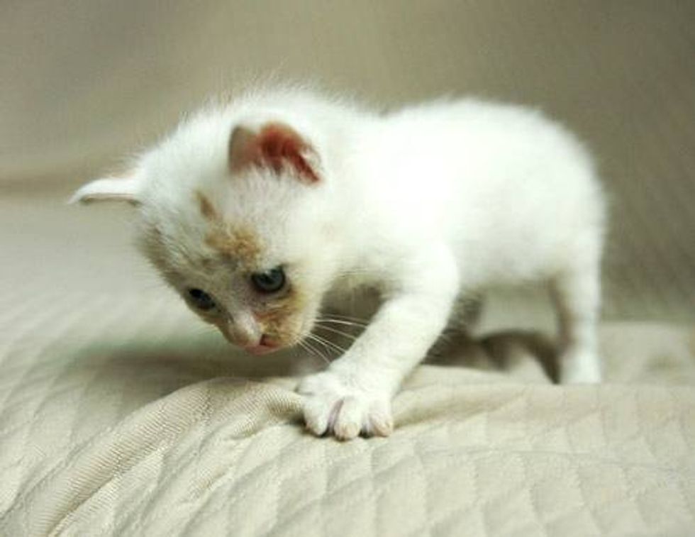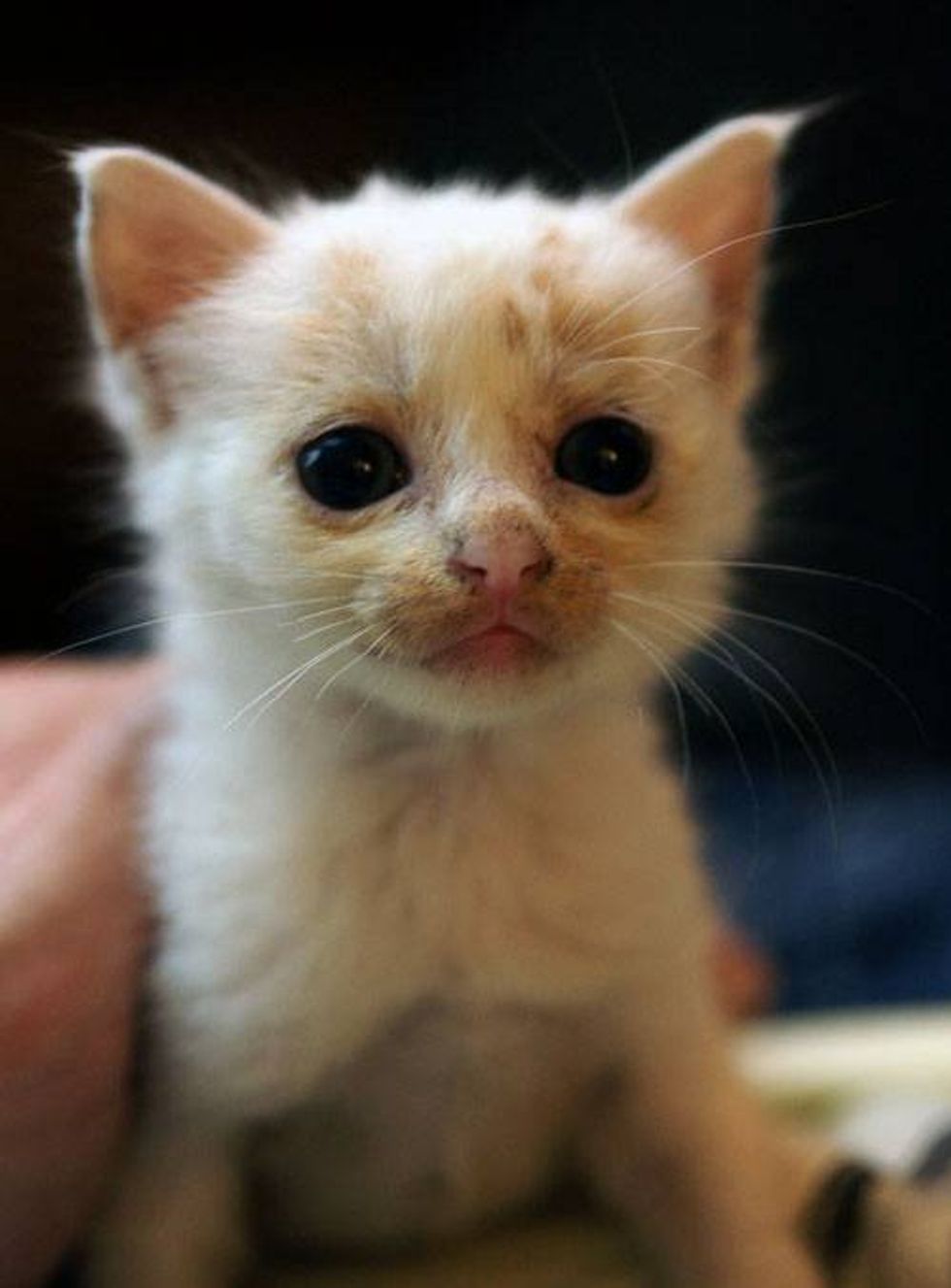 She was found in the pouring rain crawling next to the road. A kind person in Shanghai picked her up from the street, hoping to find her a loving home, but what she didn't expect was that the kitty would soon become an important part of her life.
