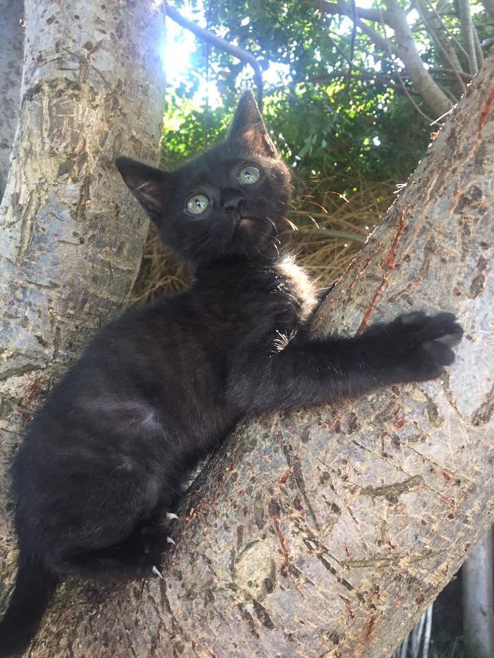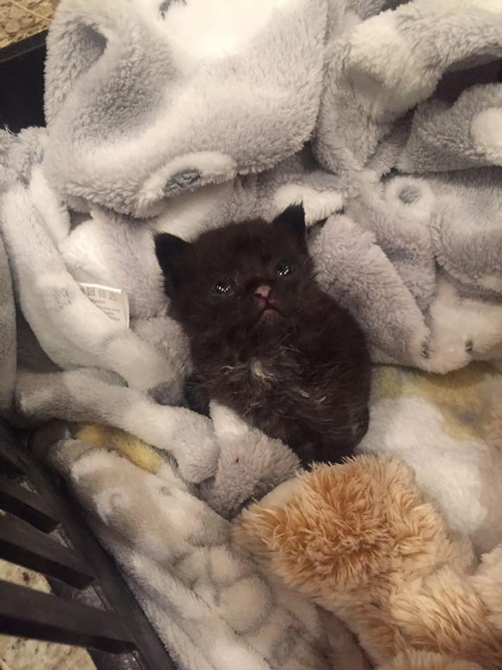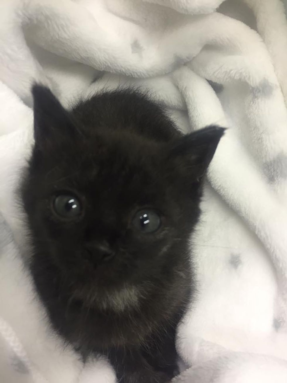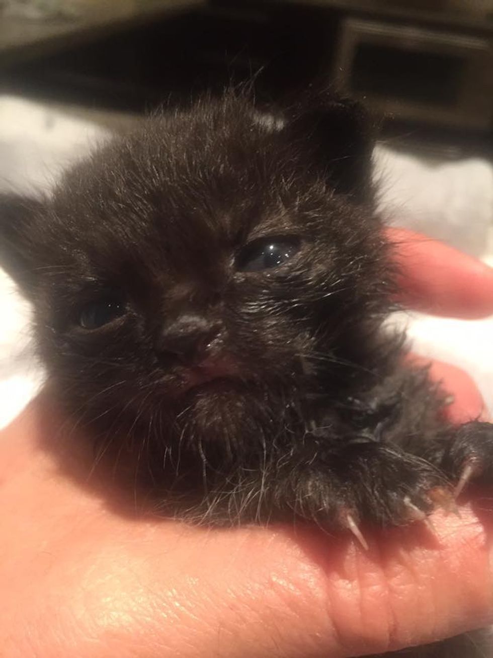 They carefully got the kittens out, but two of them had already passed away. The surviving black kitten was fighting to live.