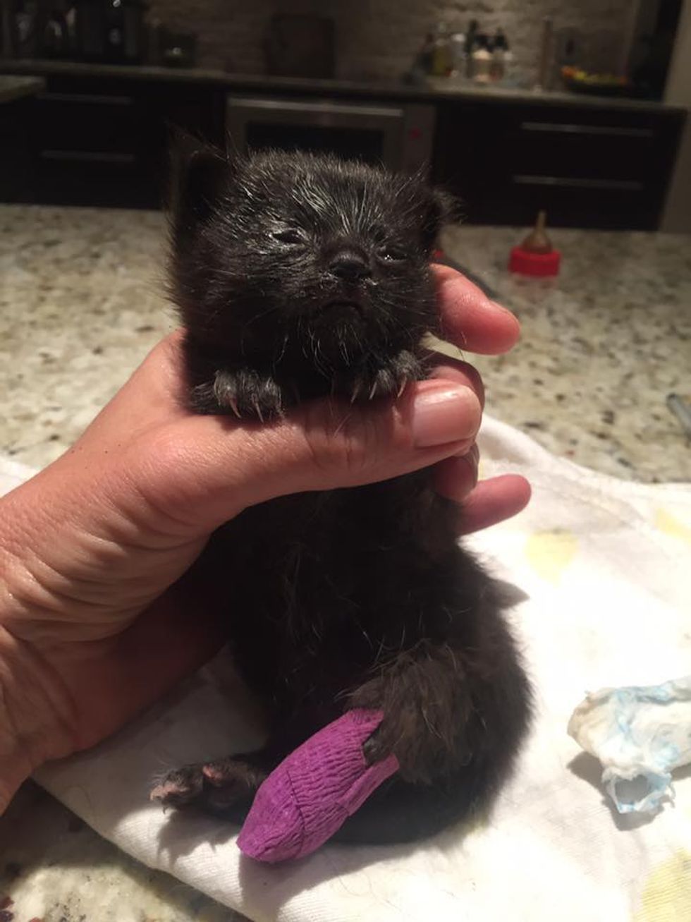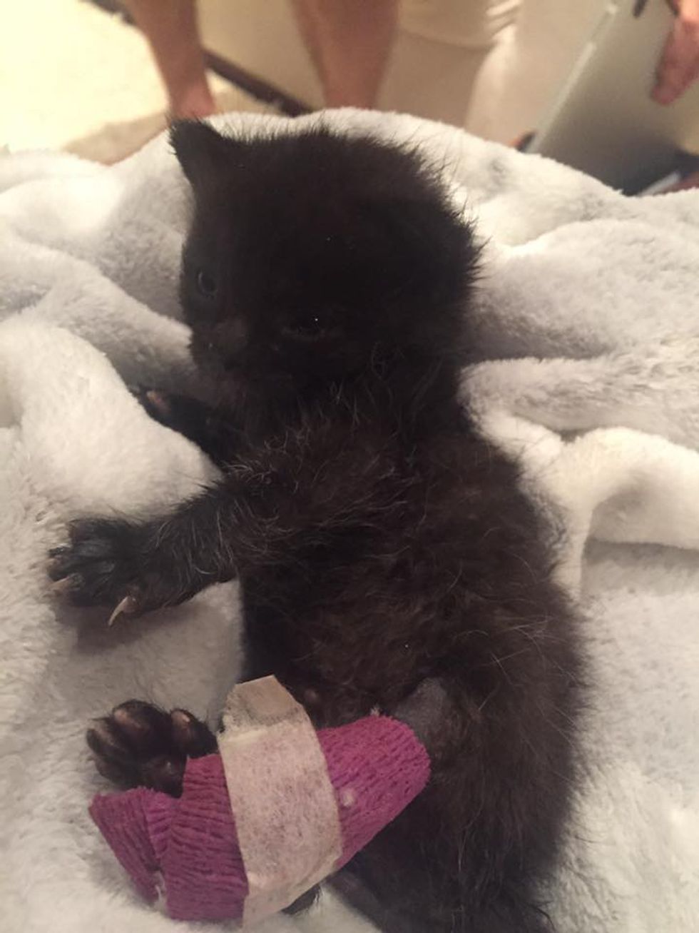 A tiny kitten fought his way to survival. He lost a paw, but gained a full life!