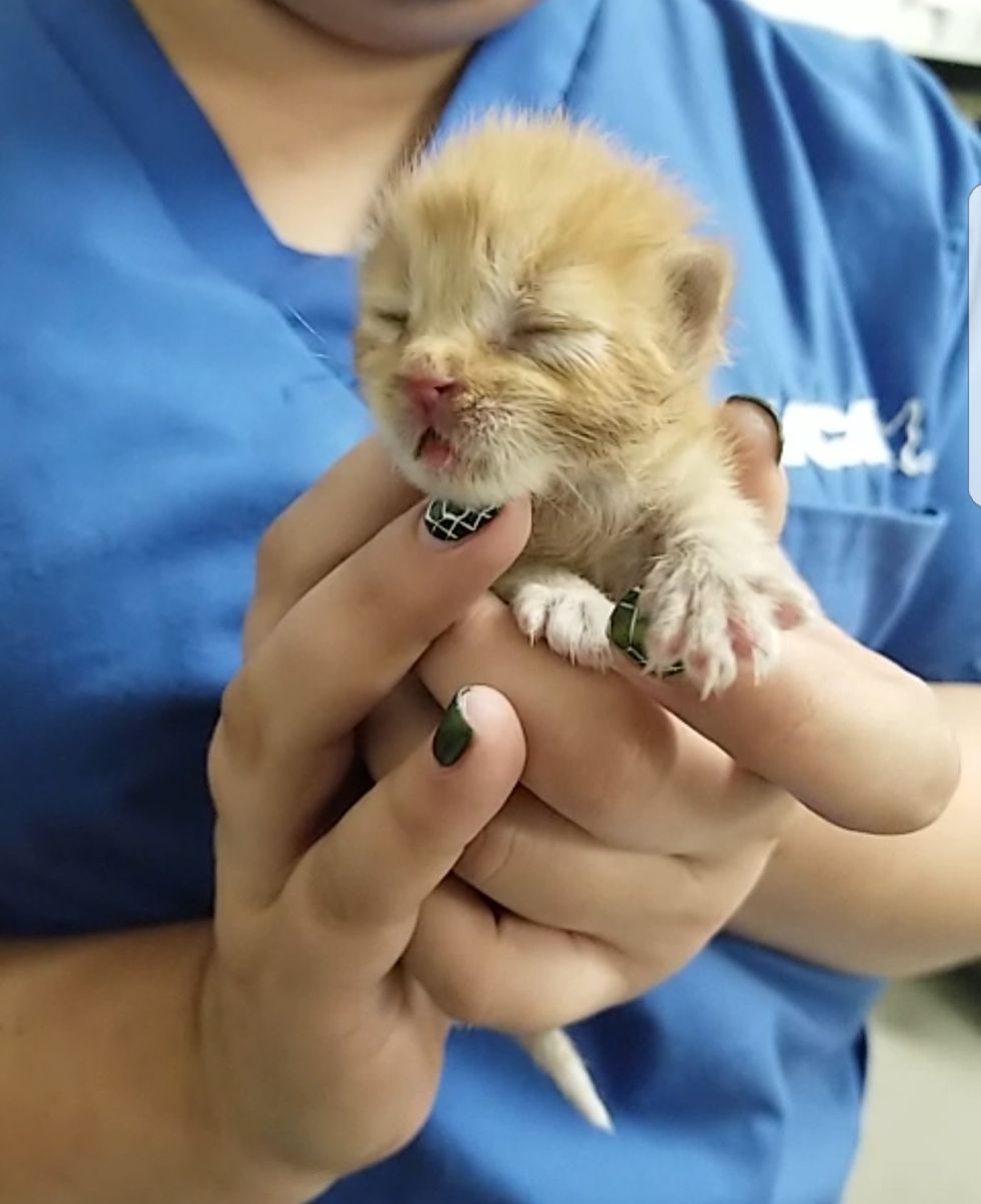 Six months ago, in the middle of a heat wave in Santa Ana, California, a tiny kitten was found stuck inside a wall all alone.