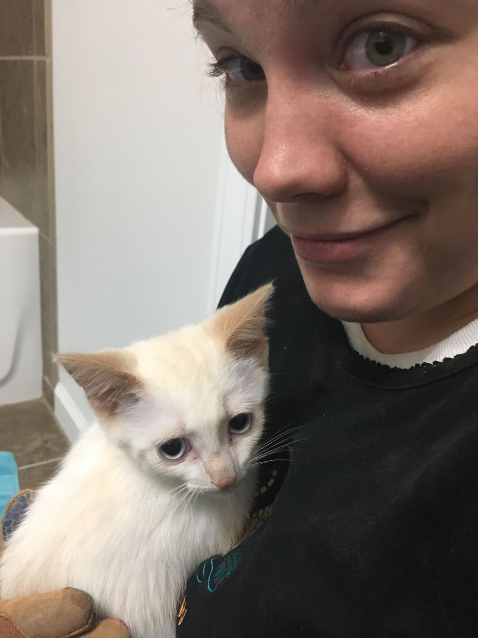 "We are very slowly introducing him to the other fur babies, starting with the puppy last night. While obviously still hesitant about the dog, he very quickly grew curious and is very obviously going to be completely fine with him!"