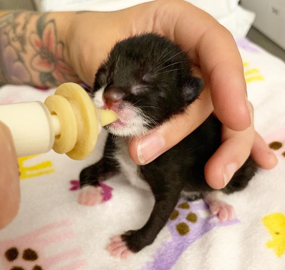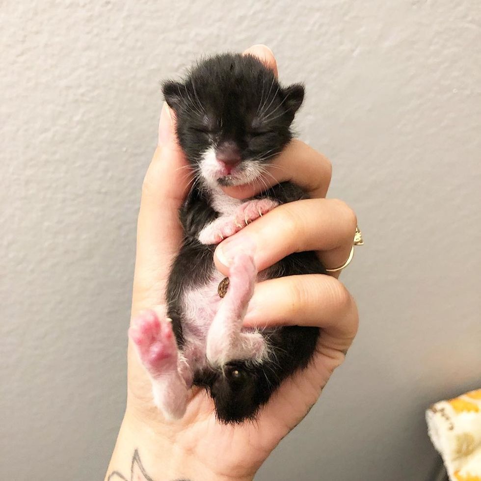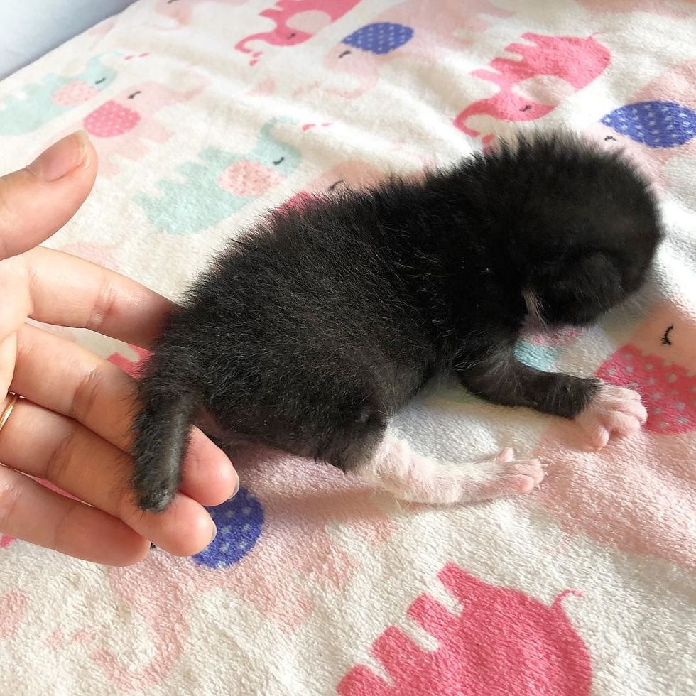 Jackie contacted Hannah Shaw, founder of Orphan Kitten Club, and got the kitty safely to their rescue. The little bundle of fur was just three days old and showed an amazing will to live.