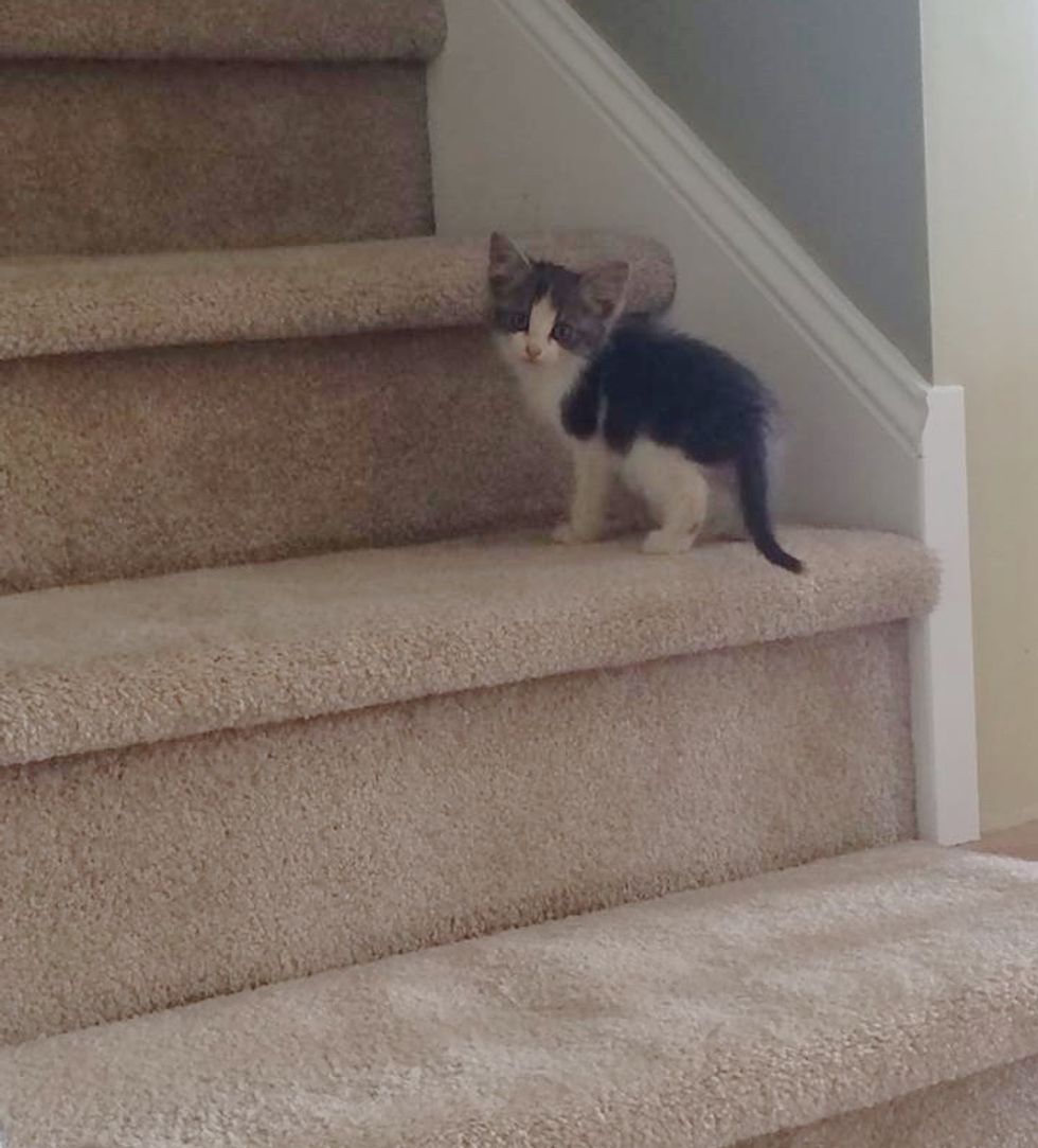 His foster mom Kelly took him home, and the little fur buddy began to explore.