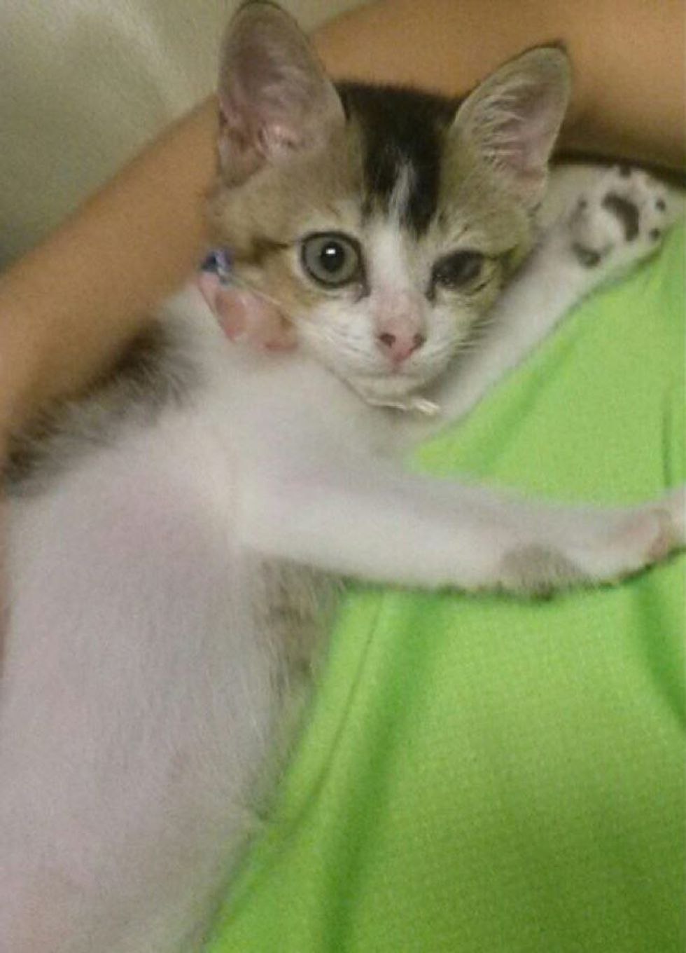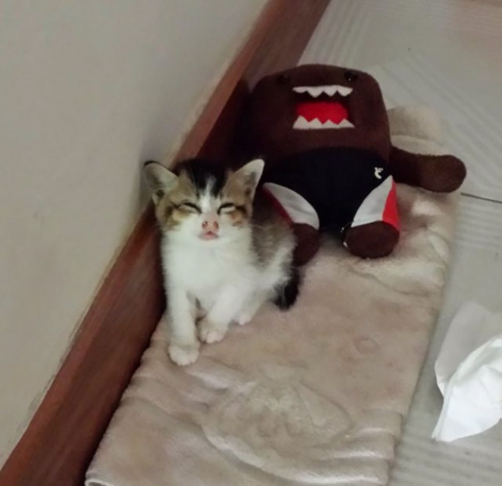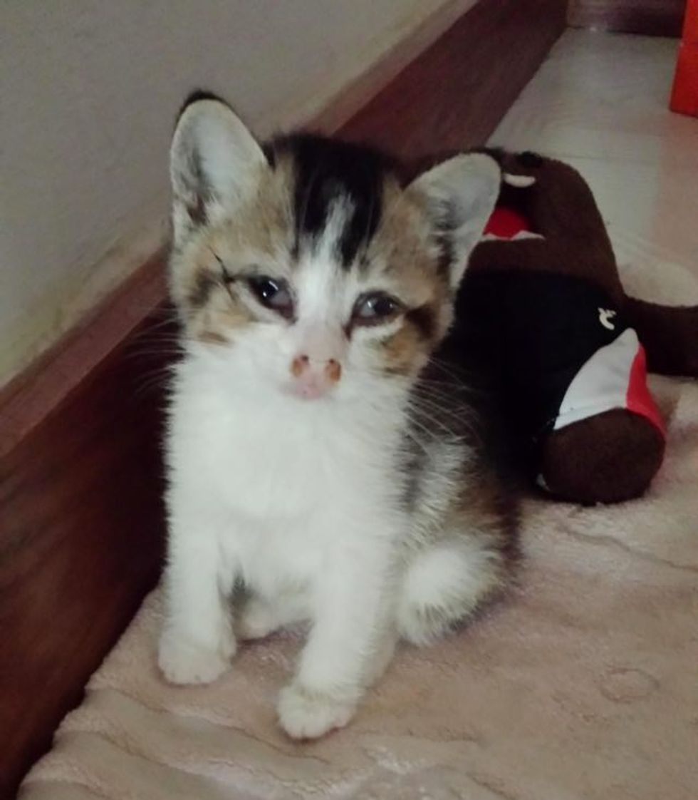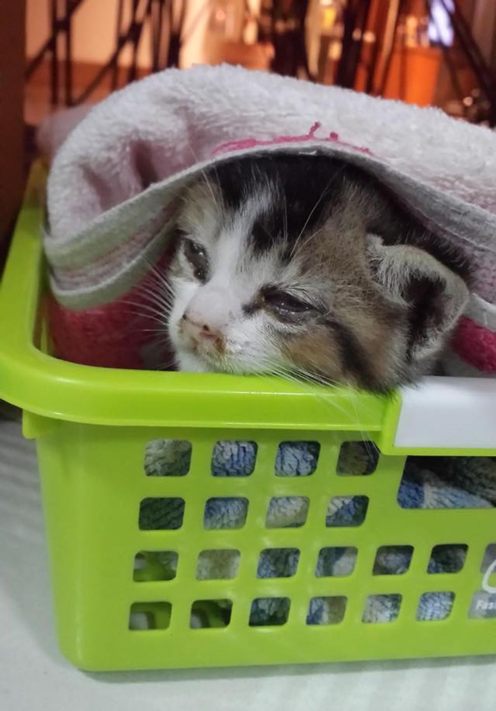 "She was crossing the road (4 lanes), her eyes were shut closed… When I first picked her up in the middle of the road, she had flu, fleas and a cough," Nessa shared with Love Meow.