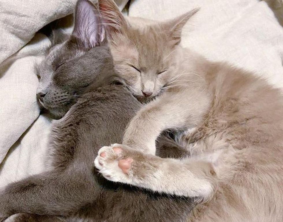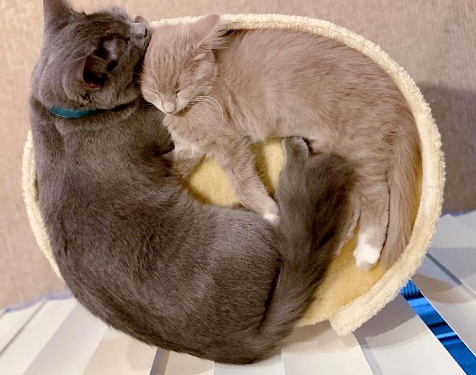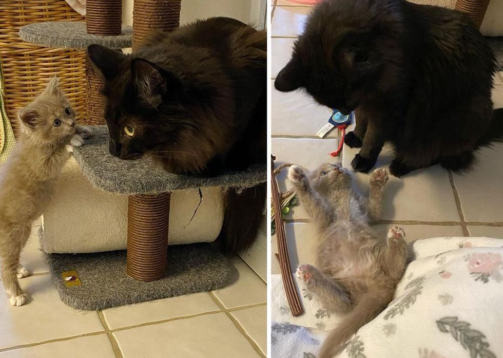 "Pari was still really small, so Merlin played the role of big brother, teaching her how to use the litter box and grooming her. In return, she provided him with endless entertainment and became his trusted accomplice in his mischief."