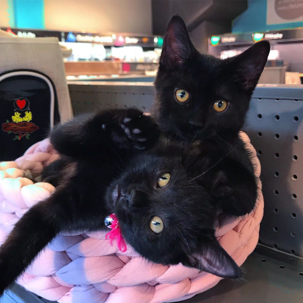 The rescue paired him up with other foster kittens. Lucy, a black kitten from another litter, quickly bonded with Tintin.