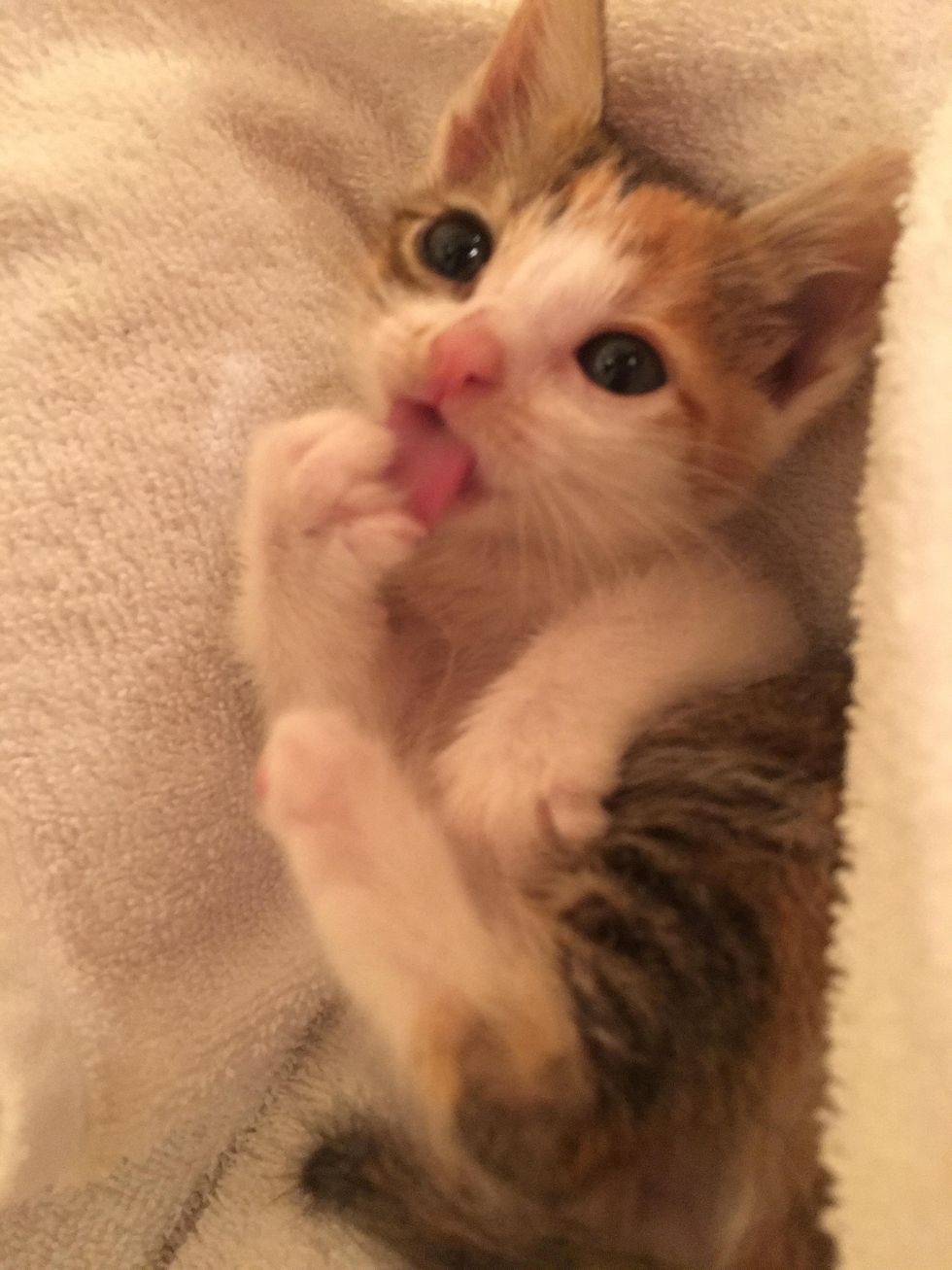A four week old calico was found outside an office. They weren't sure if she would make it through the weekend, but a young woman was determined to do whatever she could to save her.