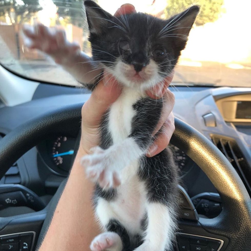 The kitten calmed down as if she knew she was safe. No one knew how she ended up there. "All that matters is that she gets the best chance possible moving forward," Drew told Love Meow.