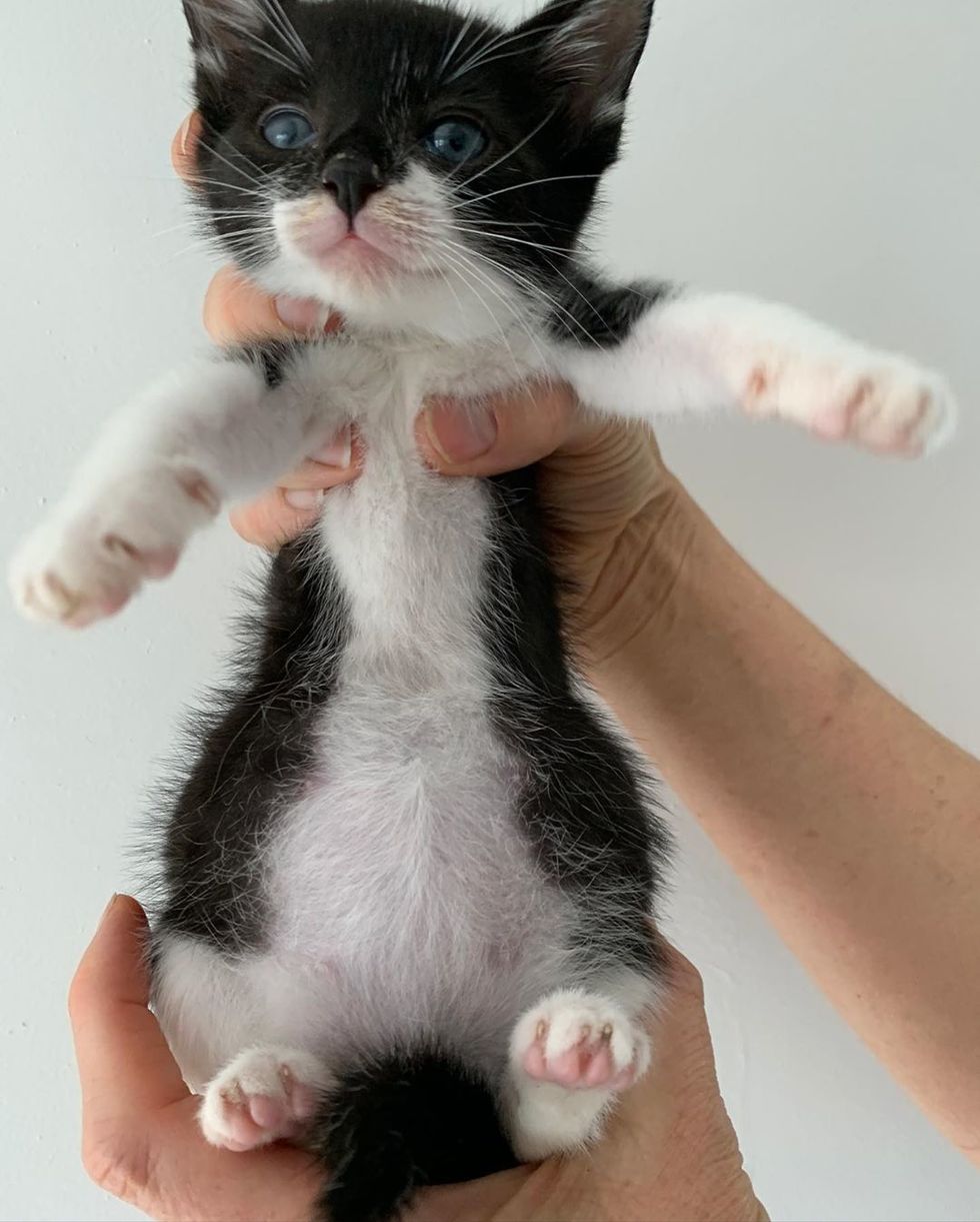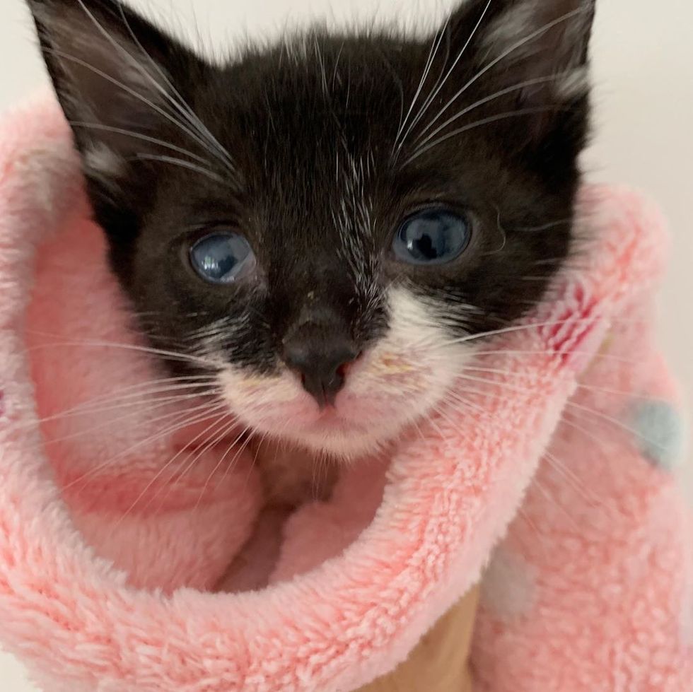 Over the next few days, the little tuxedo really improved and got her adorable baby blues back.