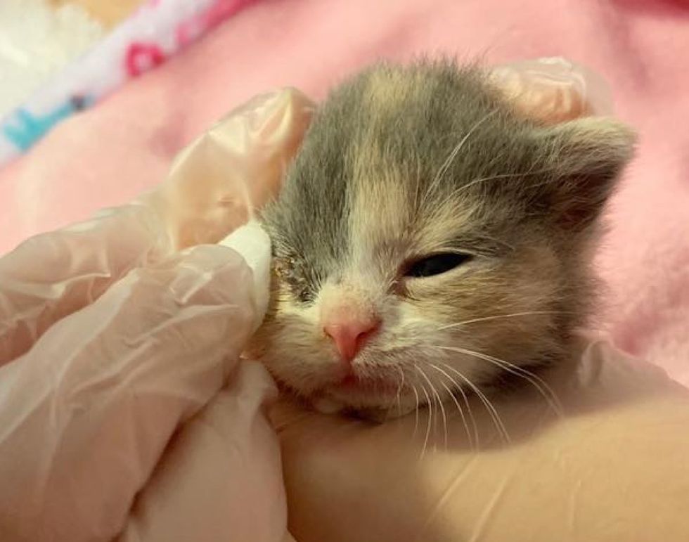"We found out about her first thing in the morning and rushed to pick her up," Sarah Kelly of Sparkle Cat Rescue told Love Meow. "She had neonatal ophthalmia, a severe eye infection, in her right eye."