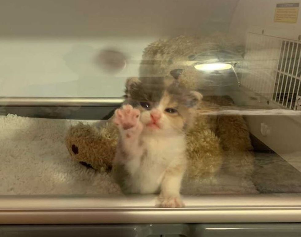 A week ago, a tiny kitten was found outside a resident's home in North Carolina, without a mother in sight. The Good Samaritan who spotted the kitten, waited several hours for the cat mom to return but it was to no avail.