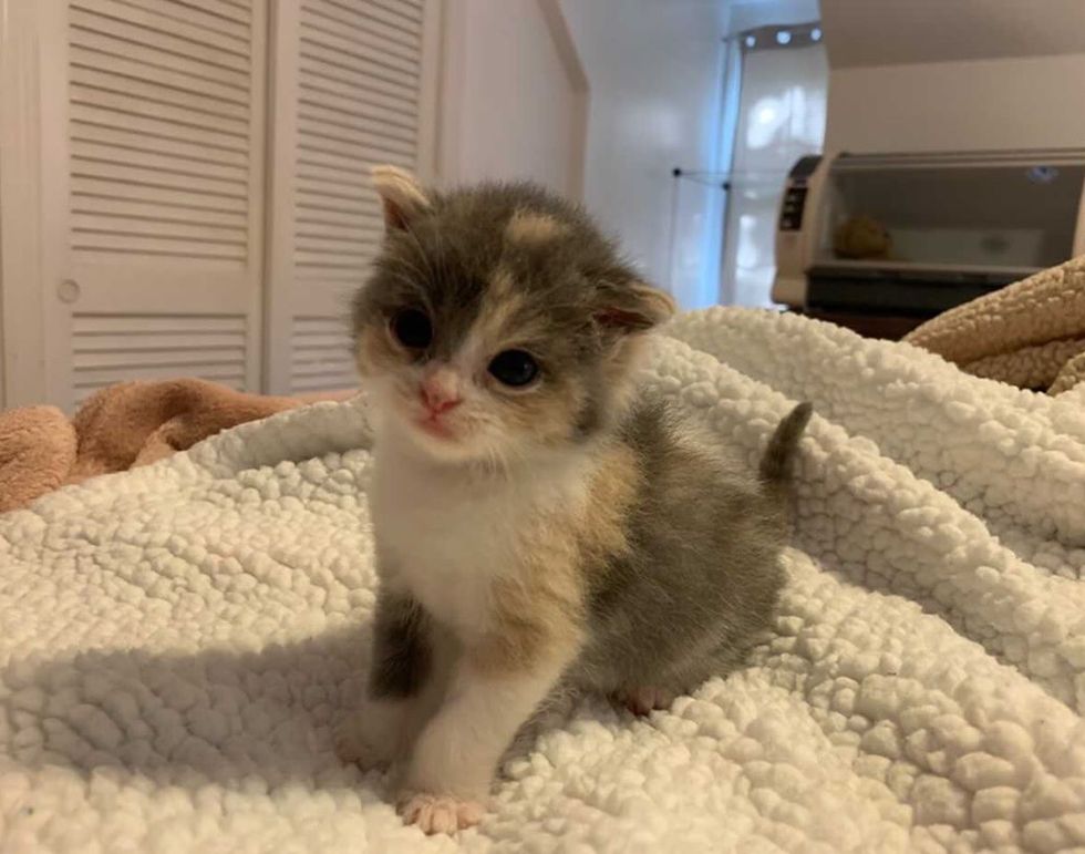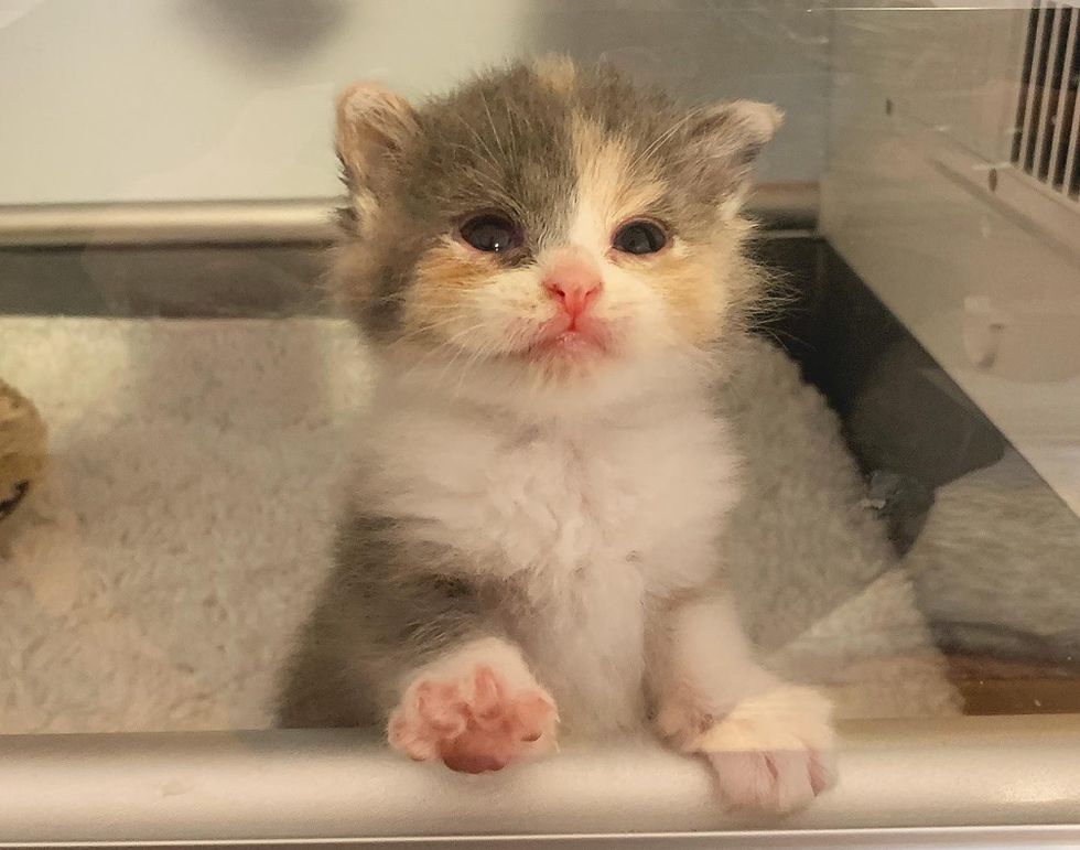 Thanks to the kind person who found the kitten in the nick of time, the sweet calico is thriving in foster care and will never have to endure another day without food or shelter.