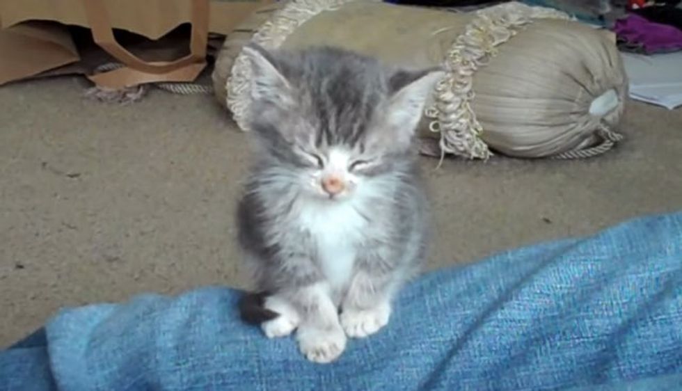 This tiny kitten was rescued along with his siblings. "We found them in a neighbor's backyard (in the rain gutter)... They're pretty big now," said Kenneth C.