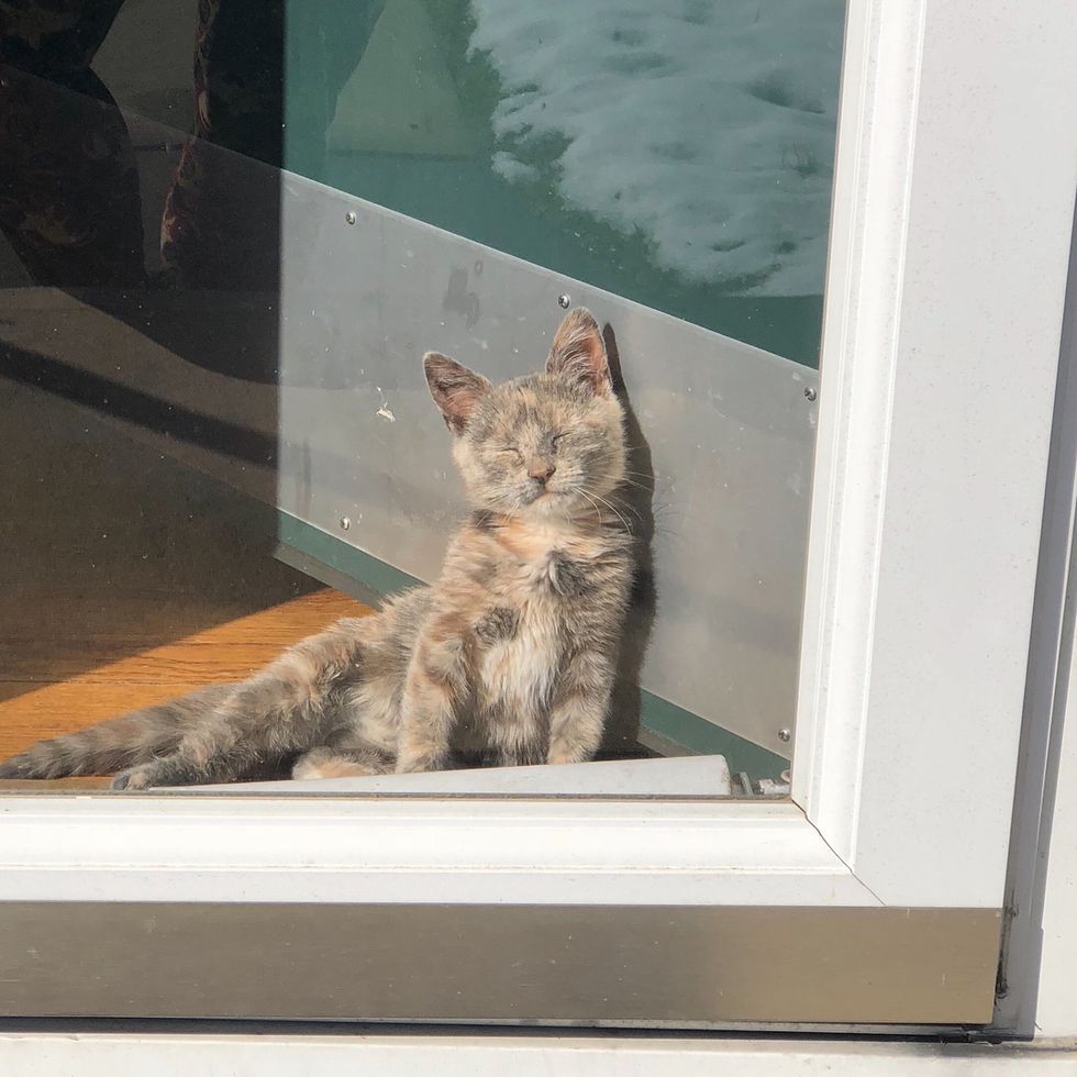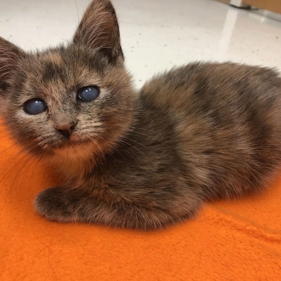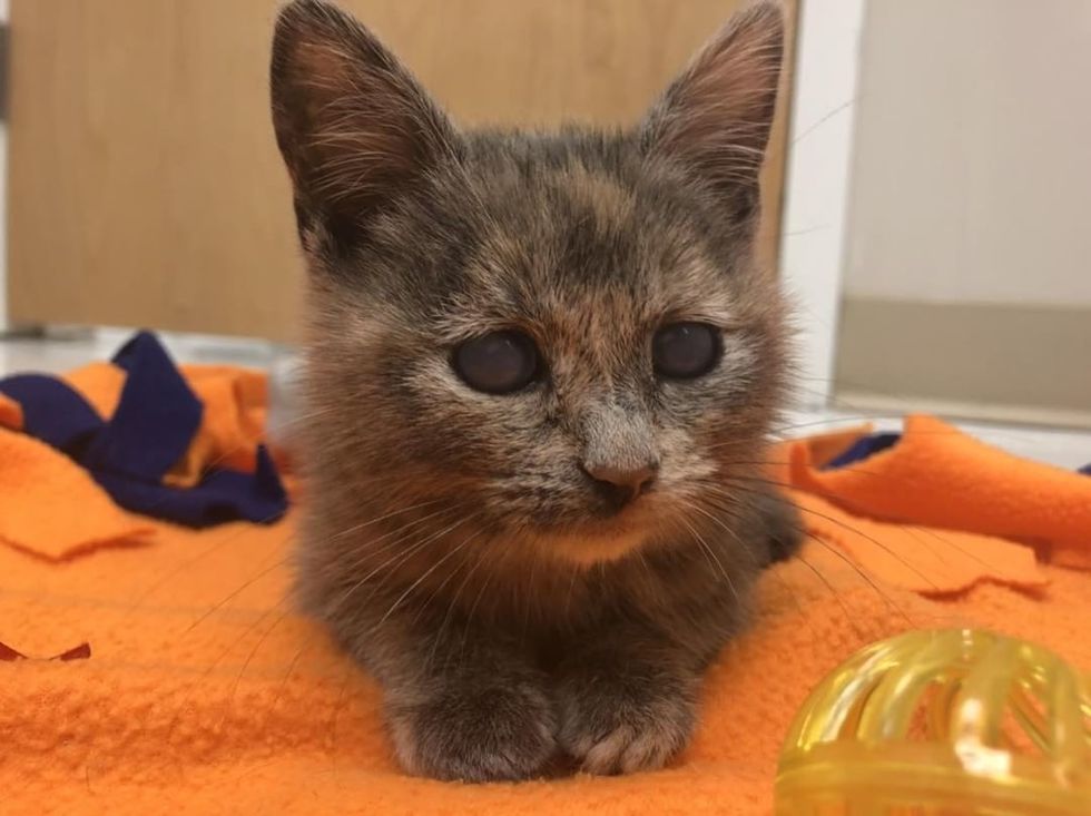A tiny tortie kitten was left in a cardboard box on the steps of a shelter in New Jersey. She was in need of foster care, so the Union County animal hospital took her in until they could find her a forever home.
